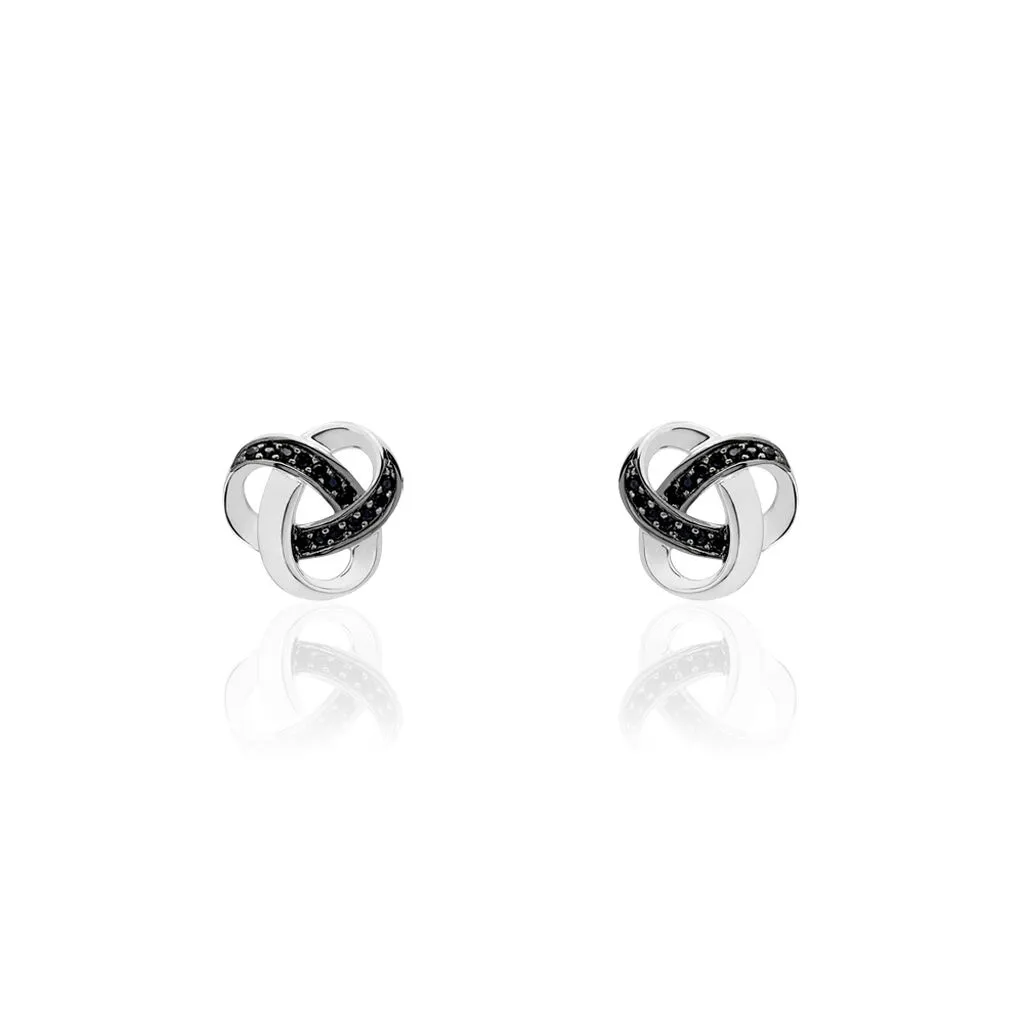 Boucles D’oreilles Puces Argent Blanc 925/1000 Constellations Oxydes De Zirconium Noirs