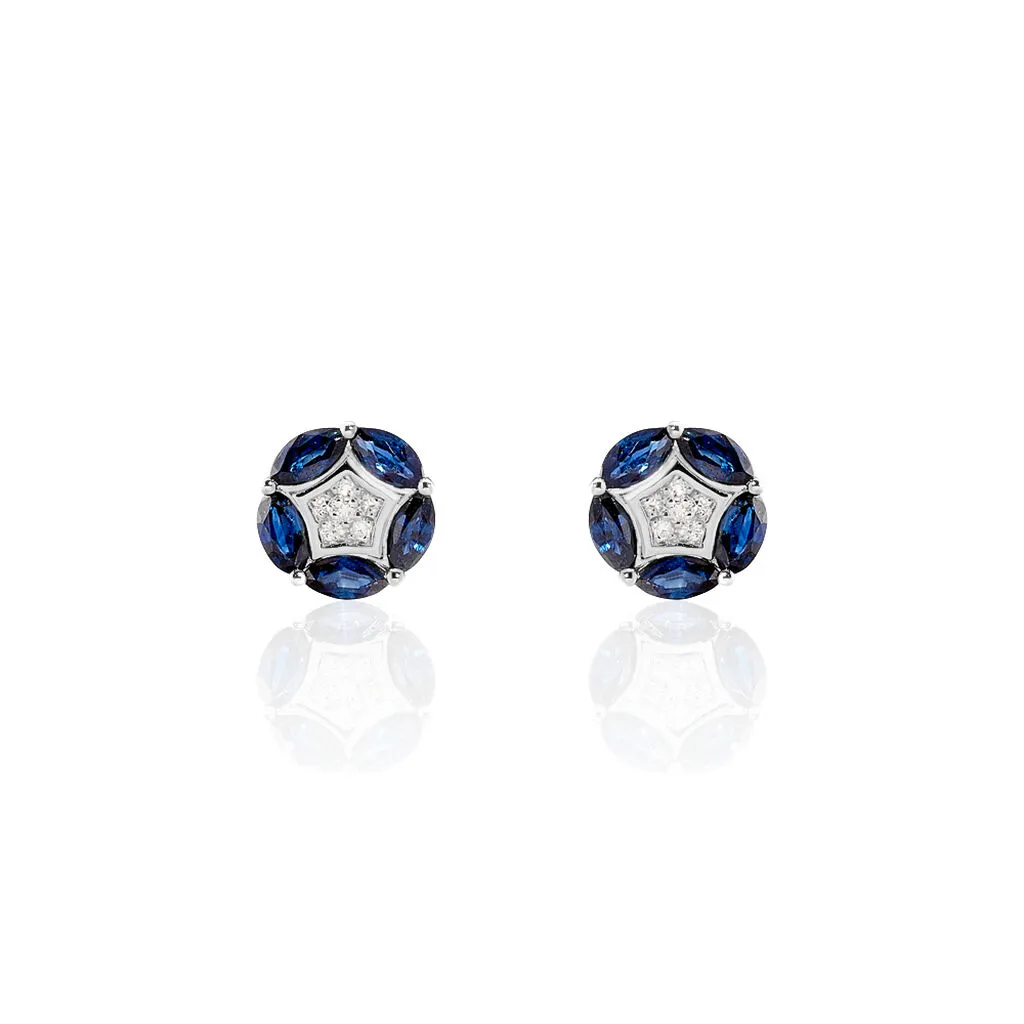 Boucles D’oreilles Puces Milana Or Blanc Saphir Et Diamant
