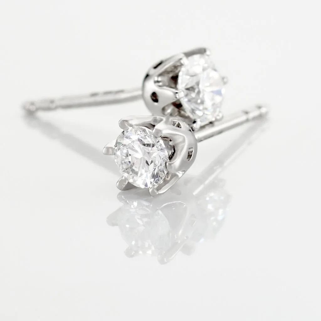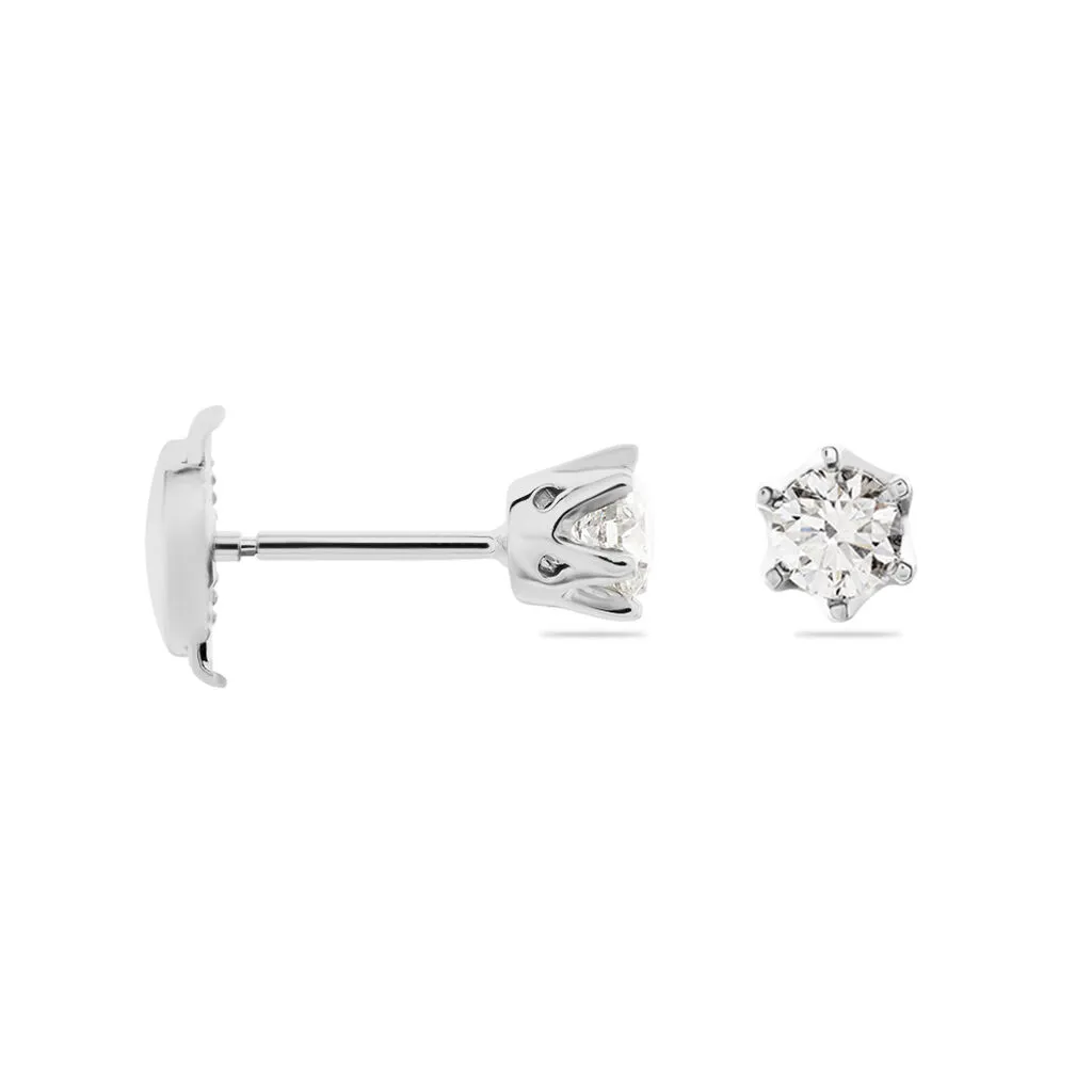 Boucles D’oreilles Platine 950/1000 Puces Diamants 0.40cts Sertis 6 Griffes Systemes Alpas