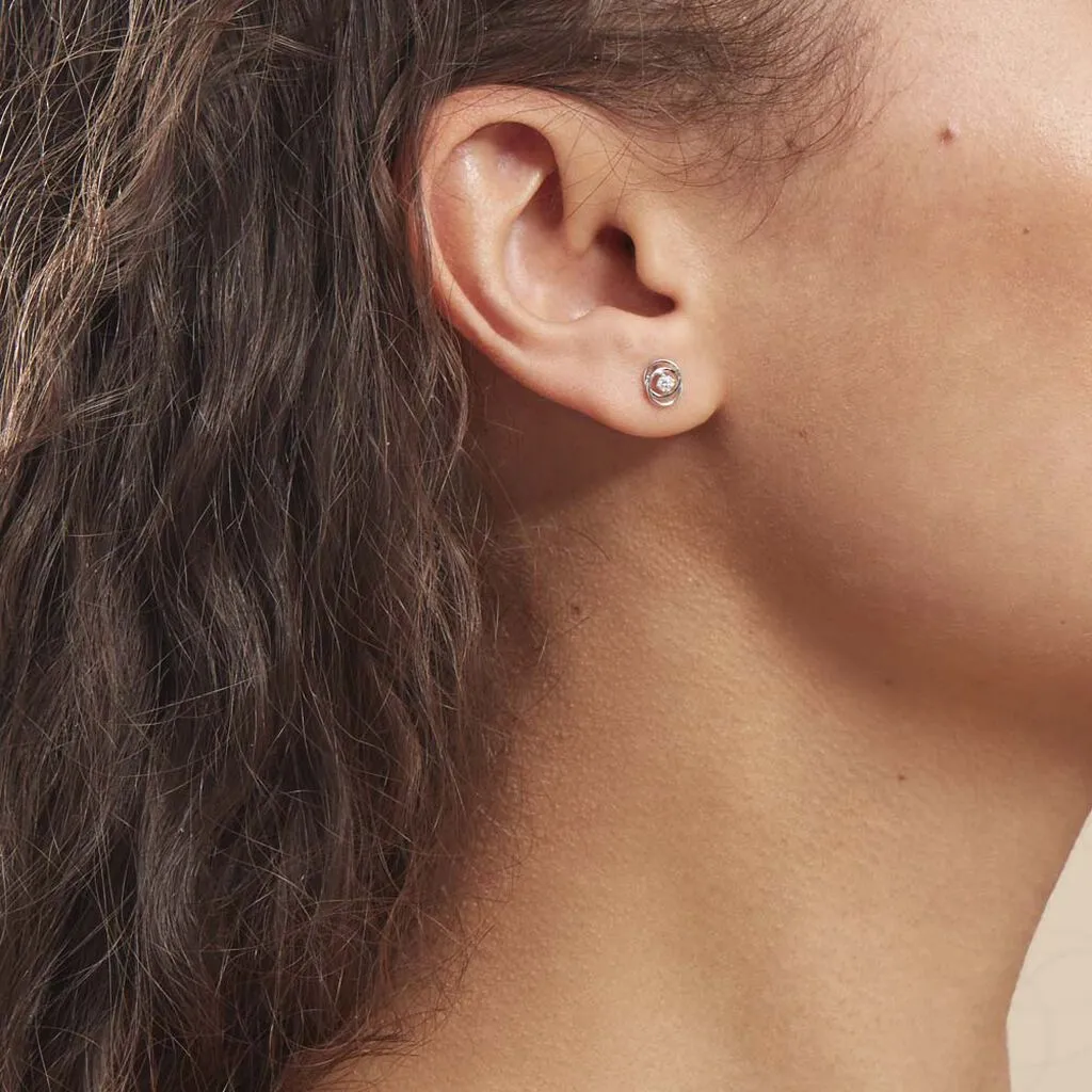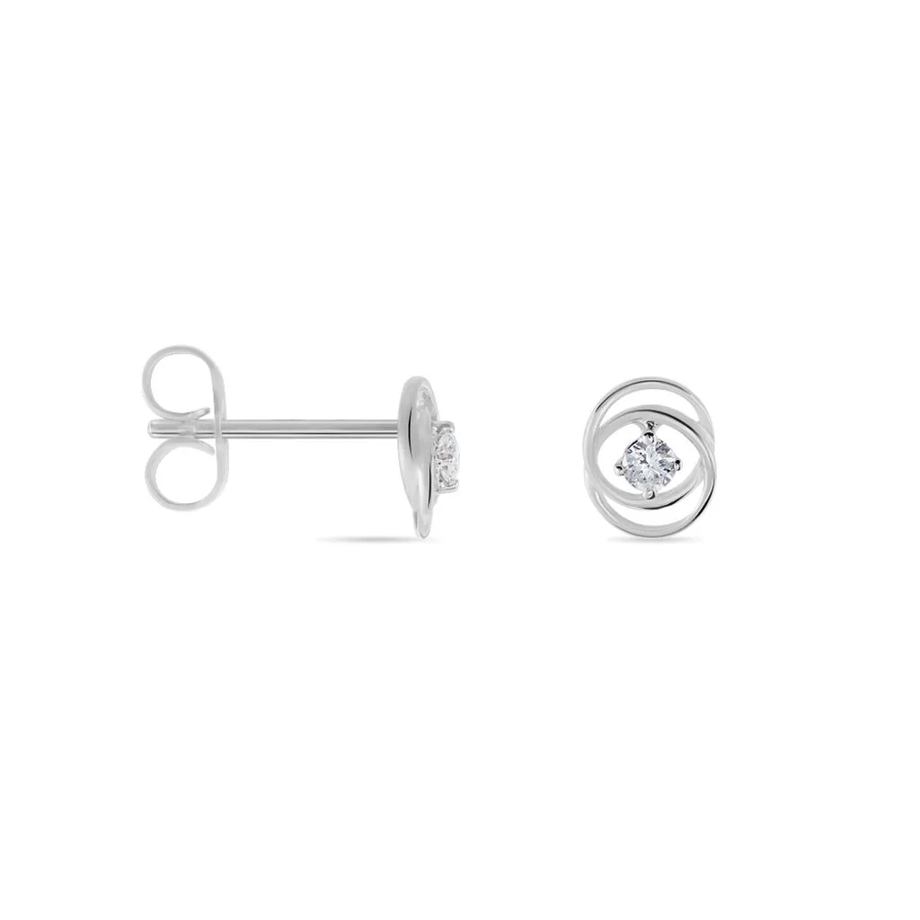 Boucles D’oreilles Puces Nid Amour Or Blanc Diamant