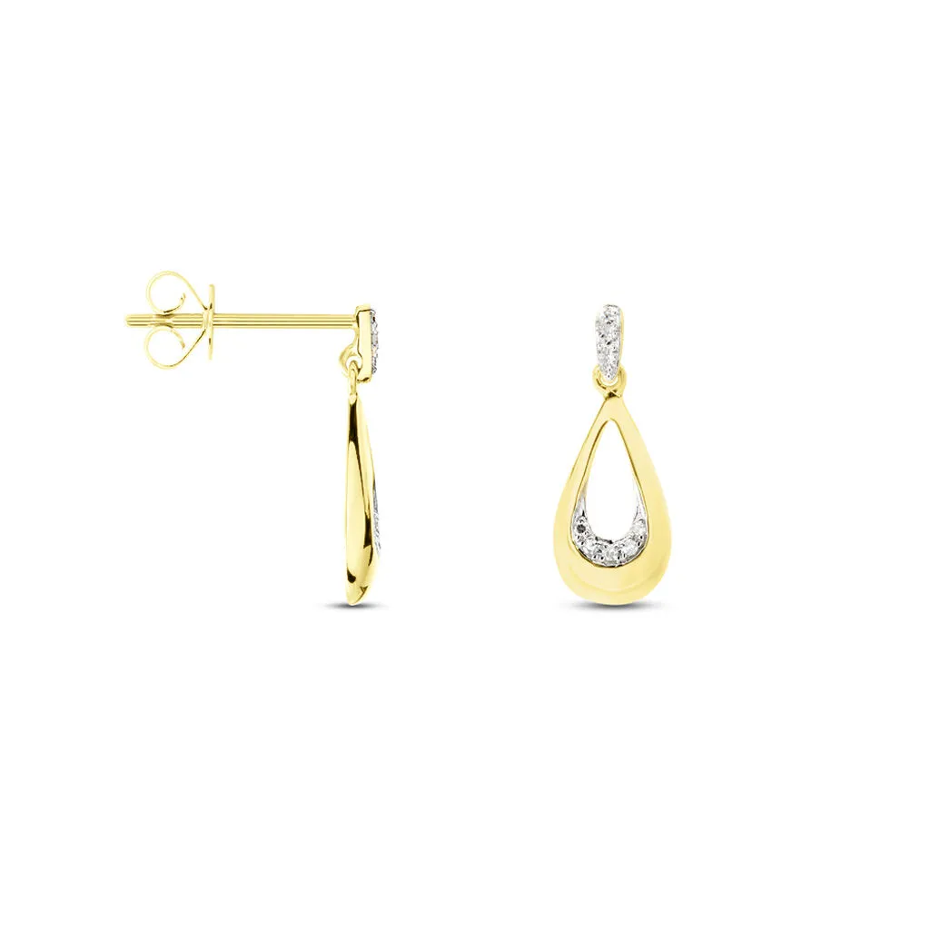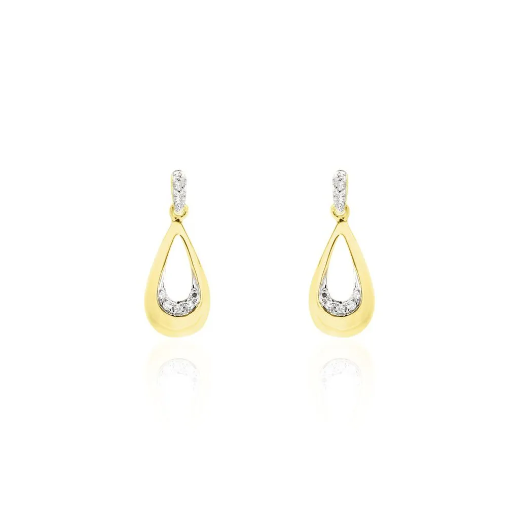 Boucles D’oreilles Or Jaune 375/1000 Formes Gouttes Pavages Diamants