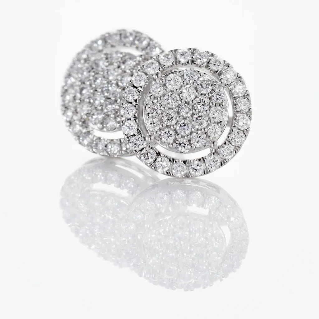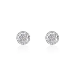 Boucles D’oreilles Puces Or Blanc 750/1000 Entourages Diamants Synthétiques