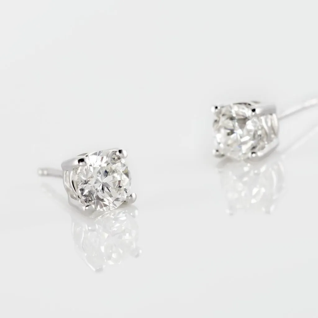 Boucles D’oreilles Or Blanc 375/1000 Puces Diamants 0.80cts Sertis 4 Griffes