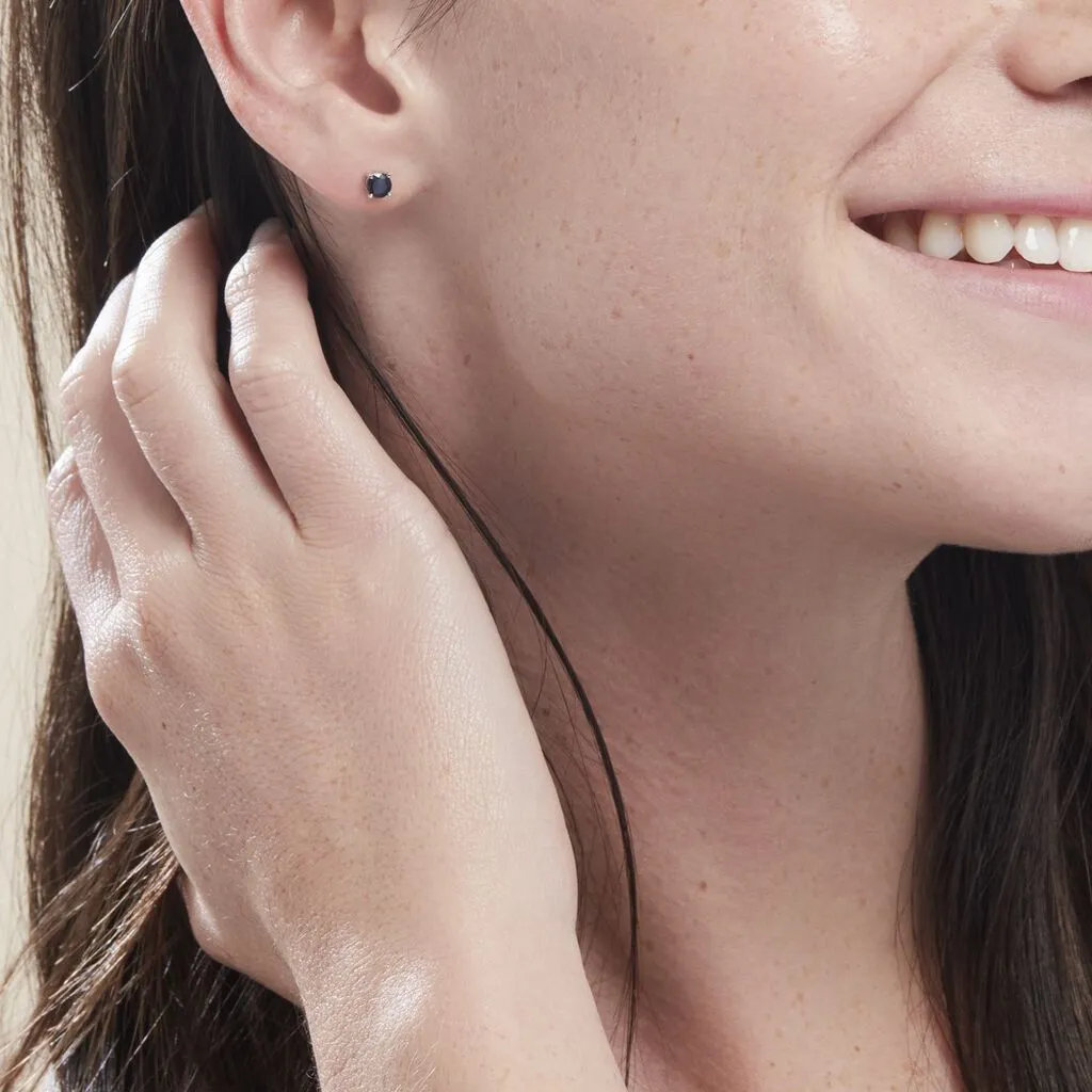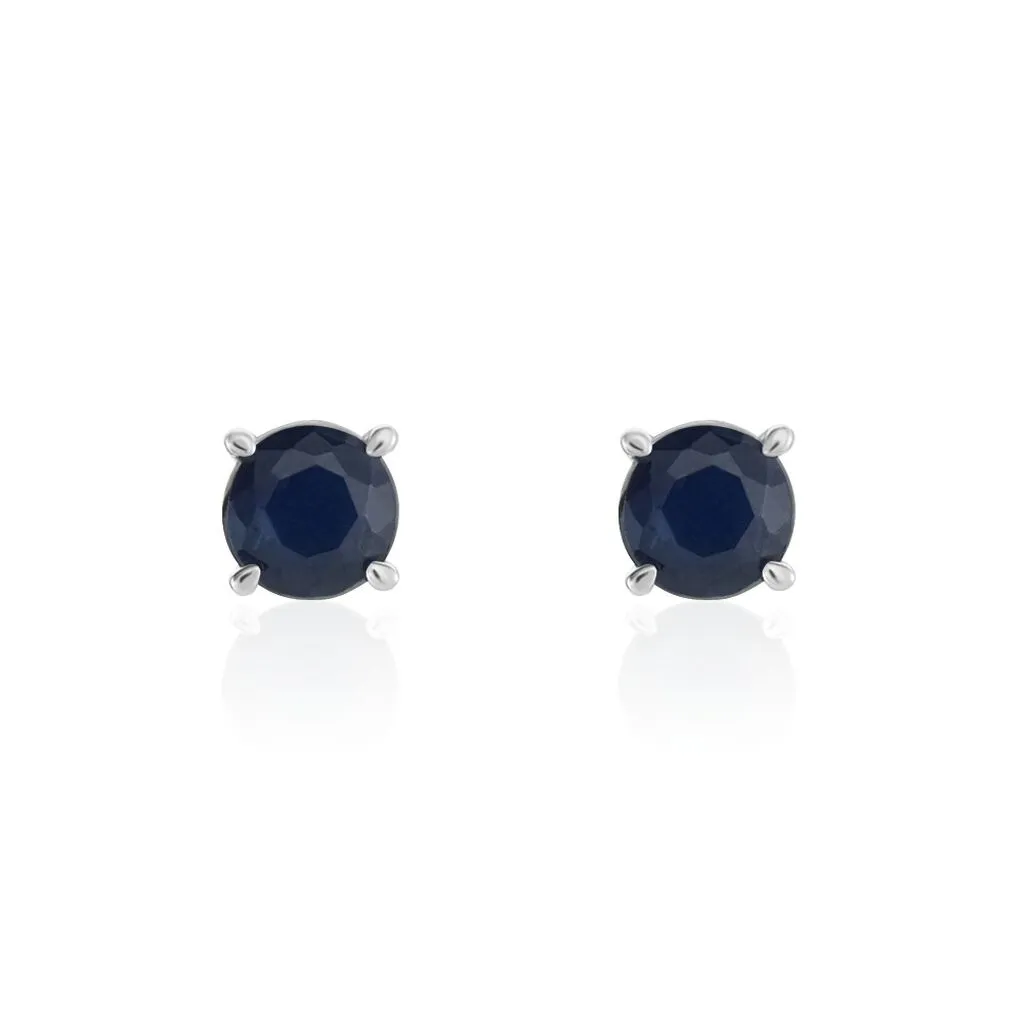 Boucles D’oreilles Puces Or Blanc 375/1000 Saphir Serti Griffes 0.66ct 4mm