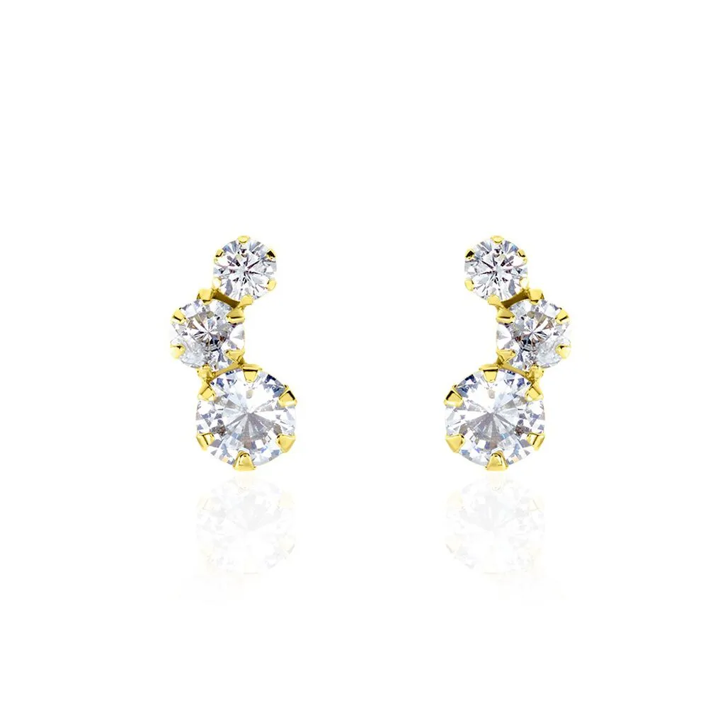 Boucles D’oreilles Puces Or Jaune 375/1000 Barrettes Oxydes De Zirconium