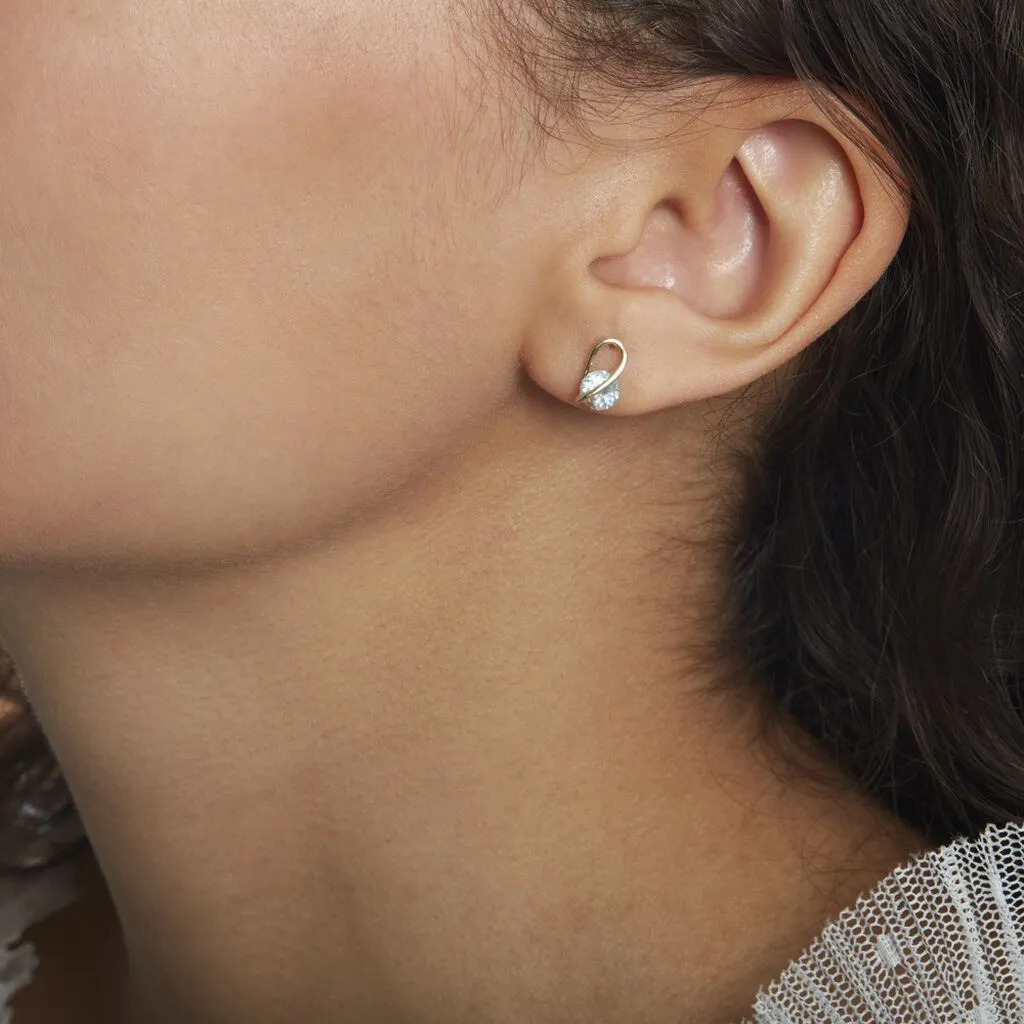 Boucles D’oreilles Puces Or Jaune 375/1000 Forme Vague Topazes Rondes 0.5cts