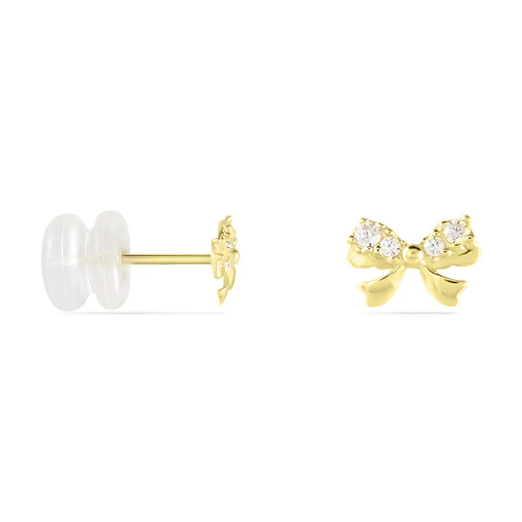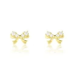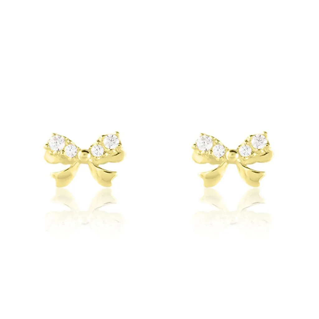 Boucles D’oreilles Puces Or Jaune 375/1000 Noeud Oxydes De Zirconium