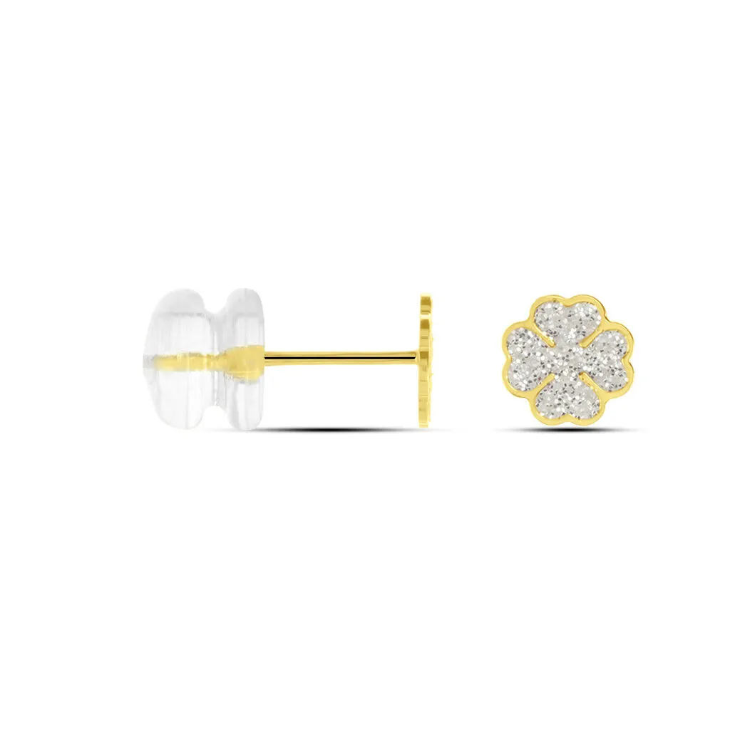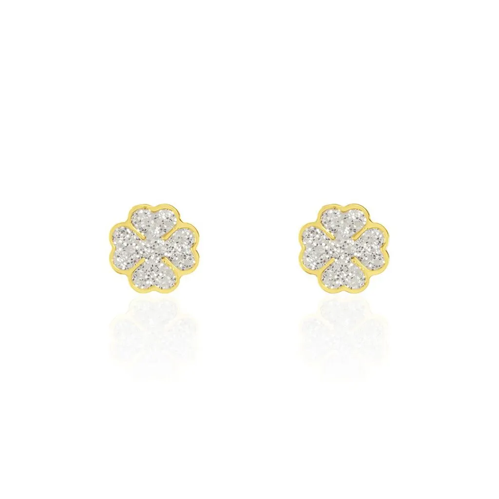 Boucles D’oreilles Puces Or Jaune 375/1000 Trèfle Glitter Silver