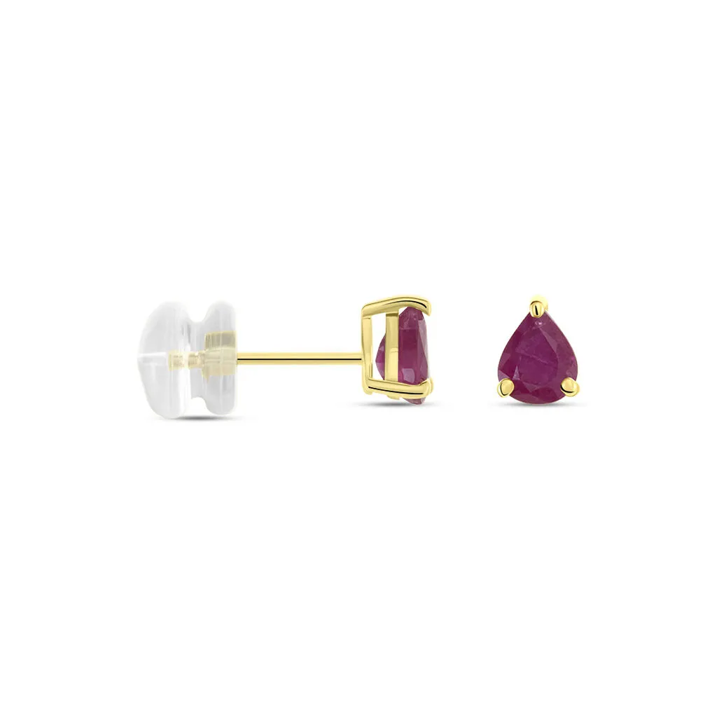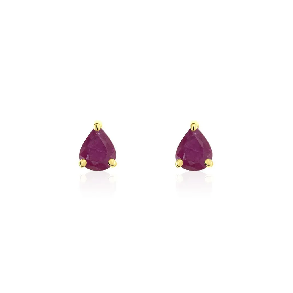 Boucles D’oreilles Puces Or Jaune 375/1000 Rubis Poire Serti Griffes 0.7ct