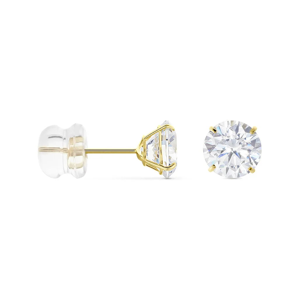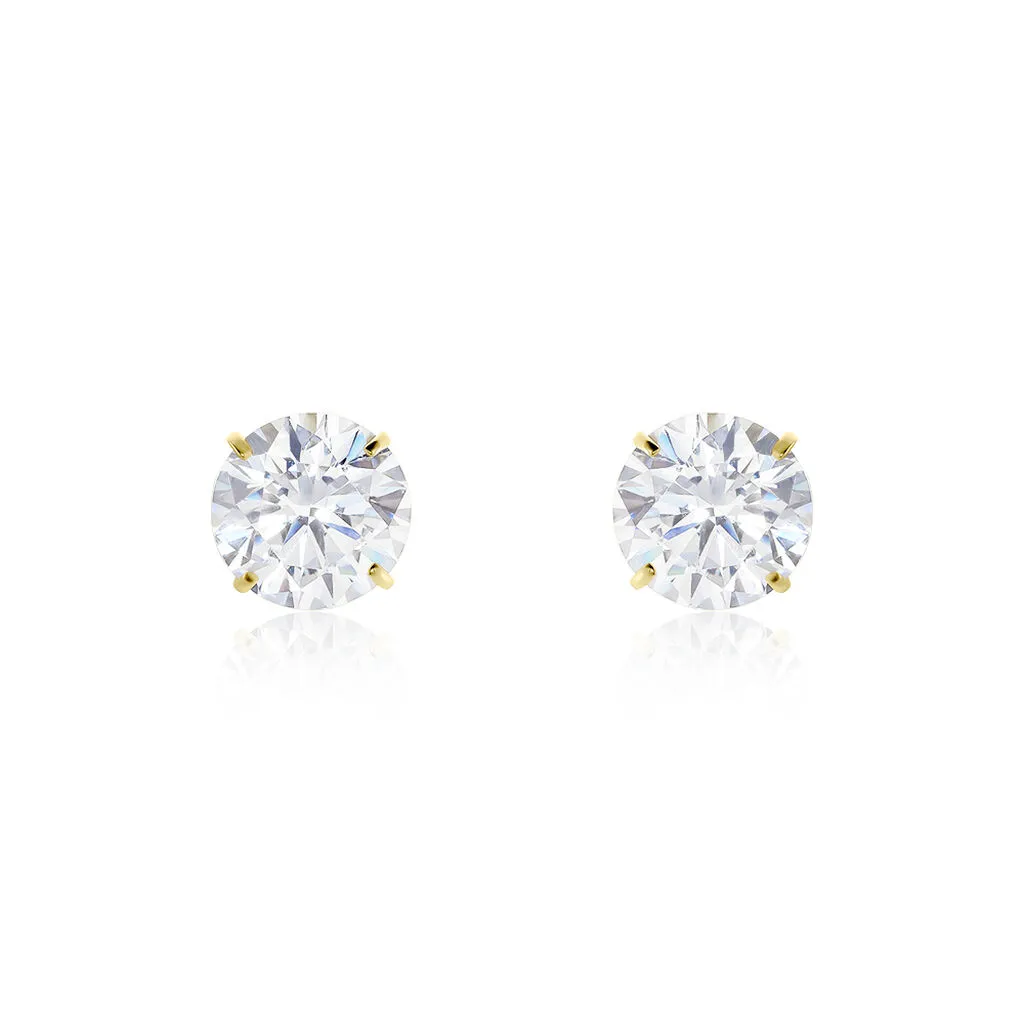 Boucles D’oreilles Puces Or Jaune 375/1000 Oxyde De Zirconium Serti 4 Griffes 6mm