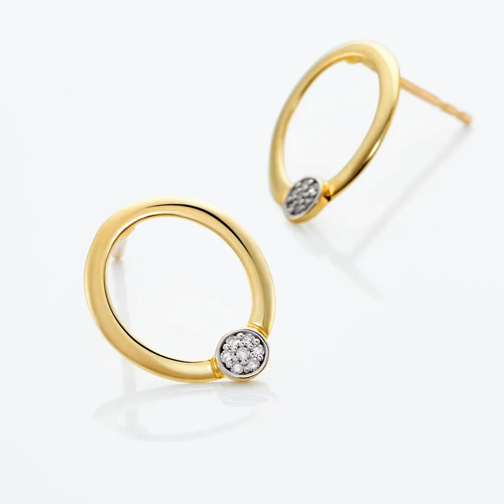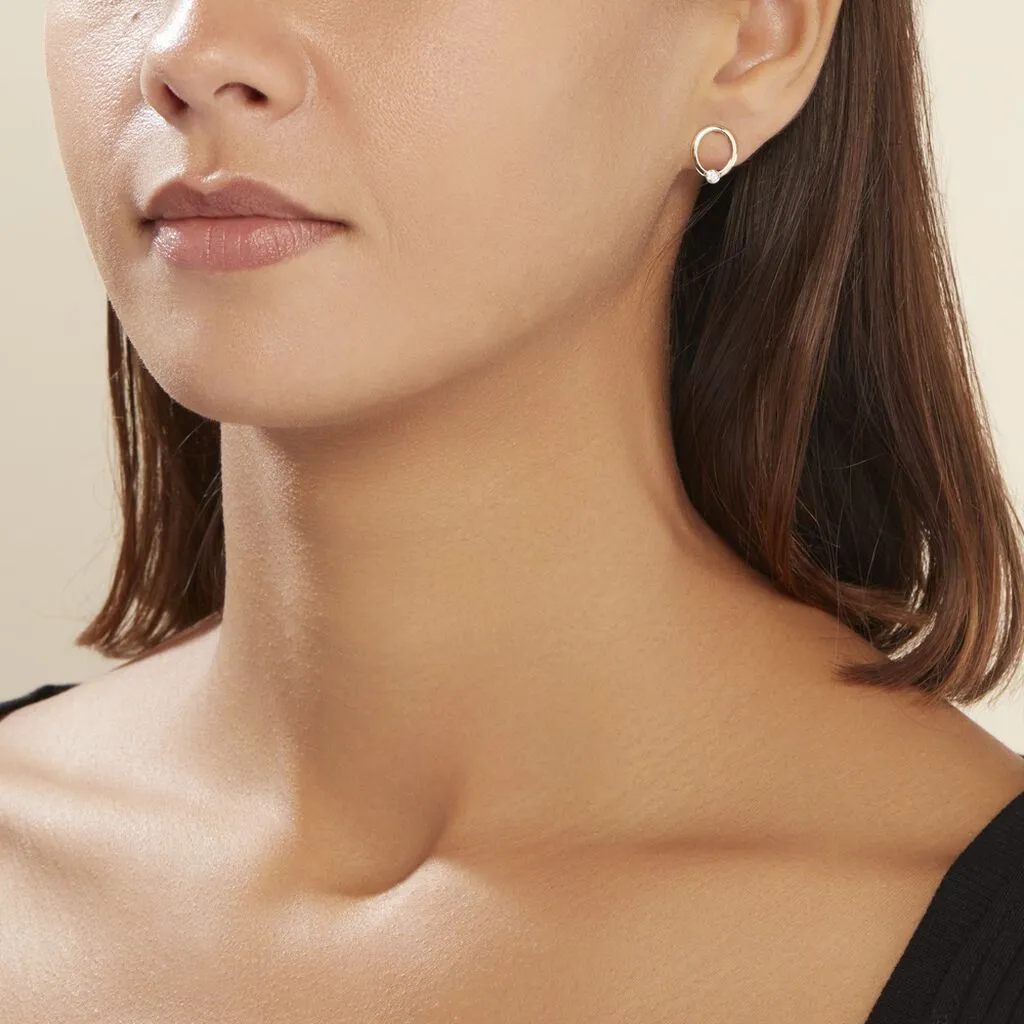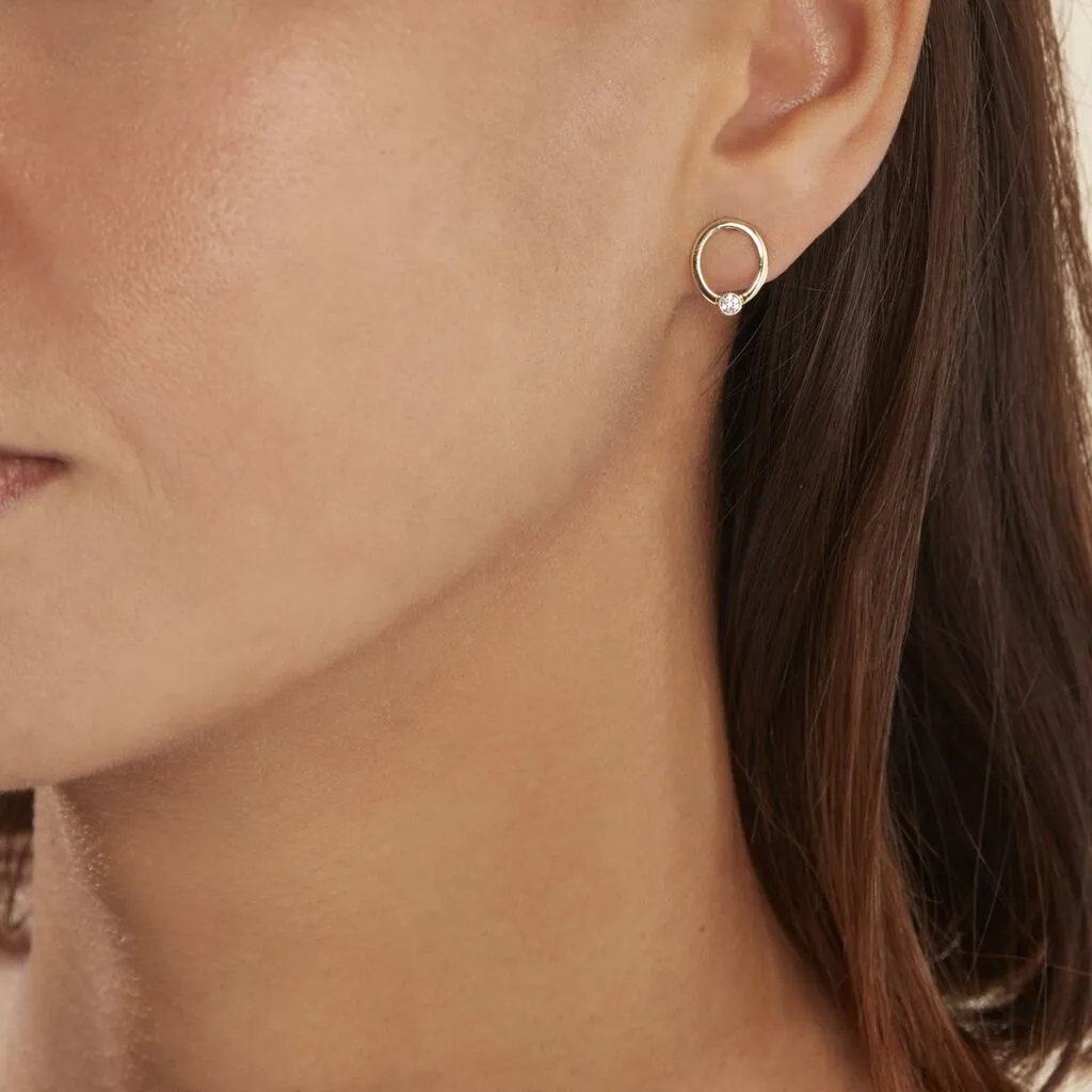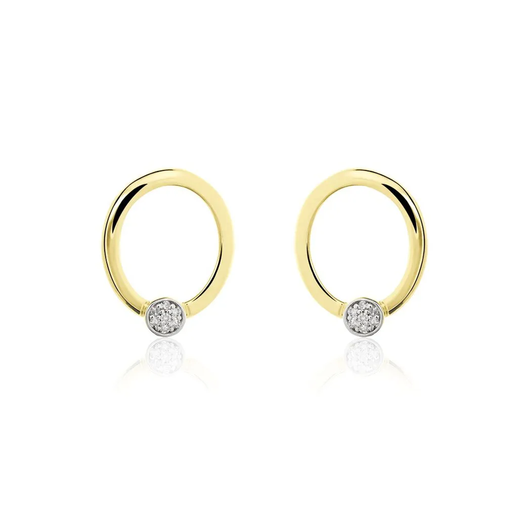 Boucles D’puces Oreilles Puces Or Jaune 375/1000 Cercles Diamants