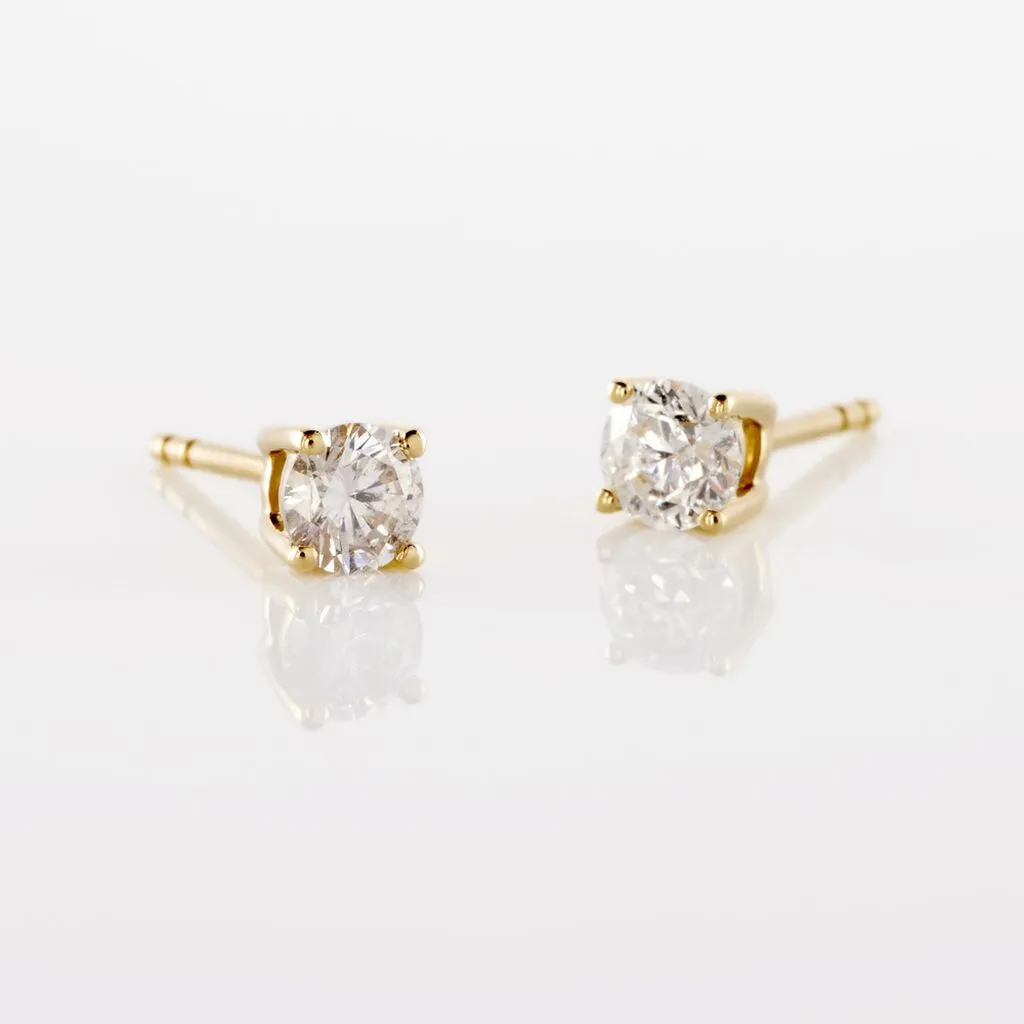 Boucles D’oreilles Or Jaune 750/1000 Puces Diamants 0.40cts Sertis 4 Griffes