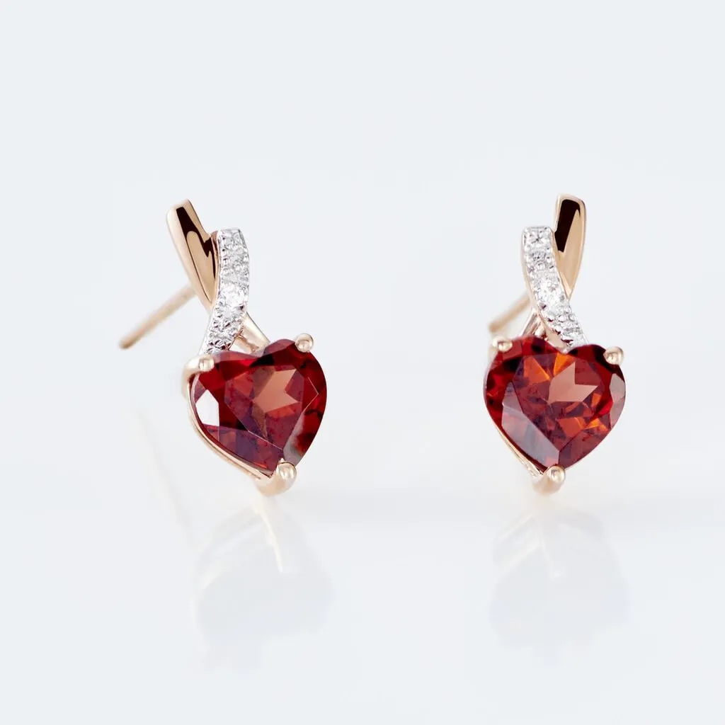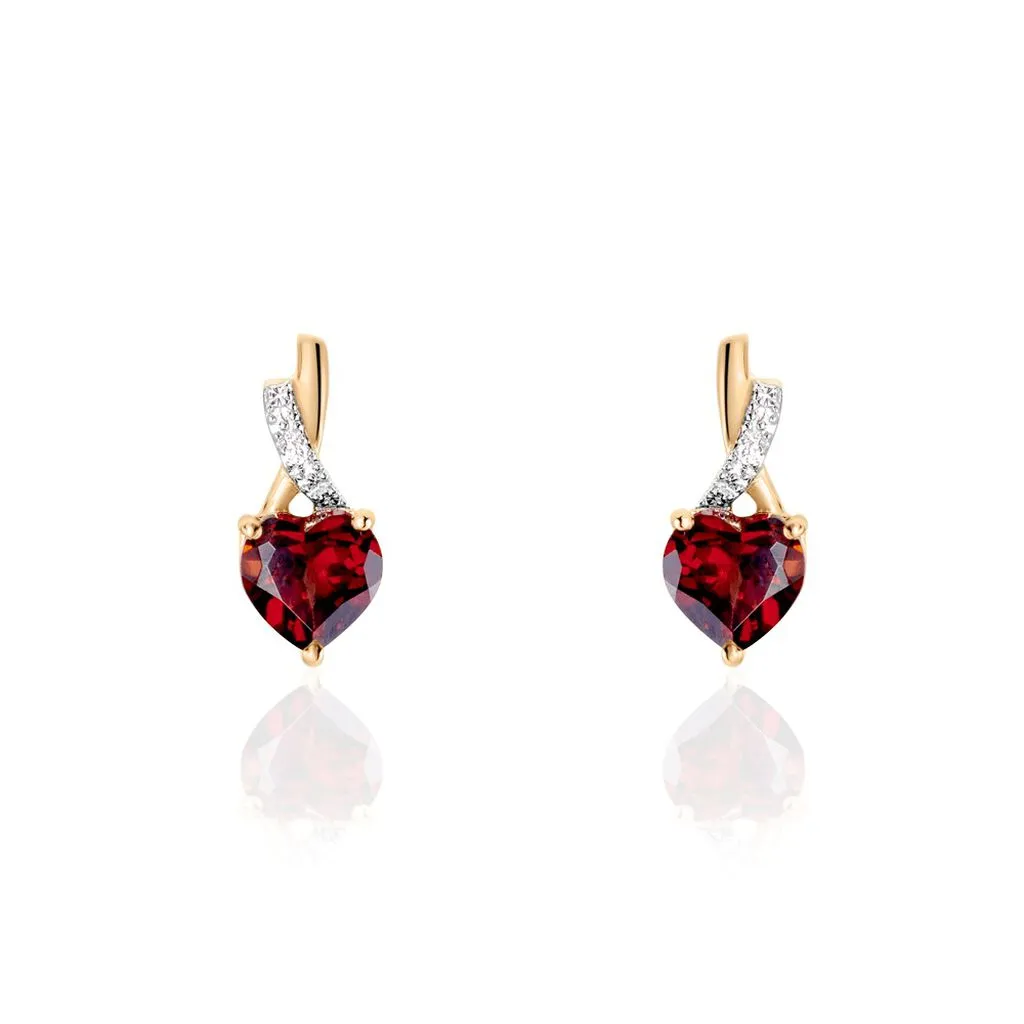 Boucles D’oreilles Puces Or Rose 375/1000 Rhodolite Rouge Serti Griffes