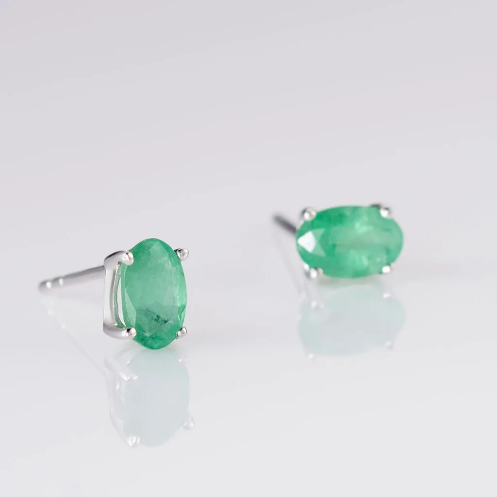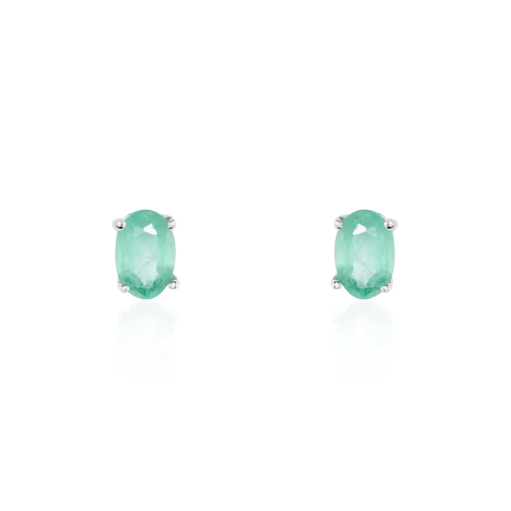 Boucles D’oreilles Puces Ovale Or Blanc Emeraude