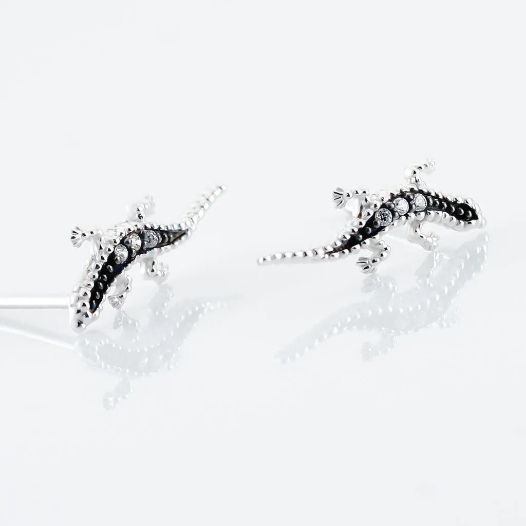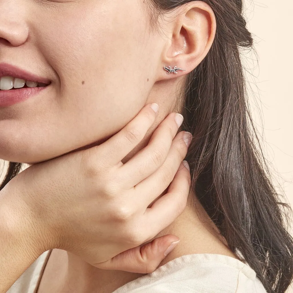 Boucles D’oreilles Argent Blanc 925/1000 Lezards Ruthenium Oxydes De Zirconium