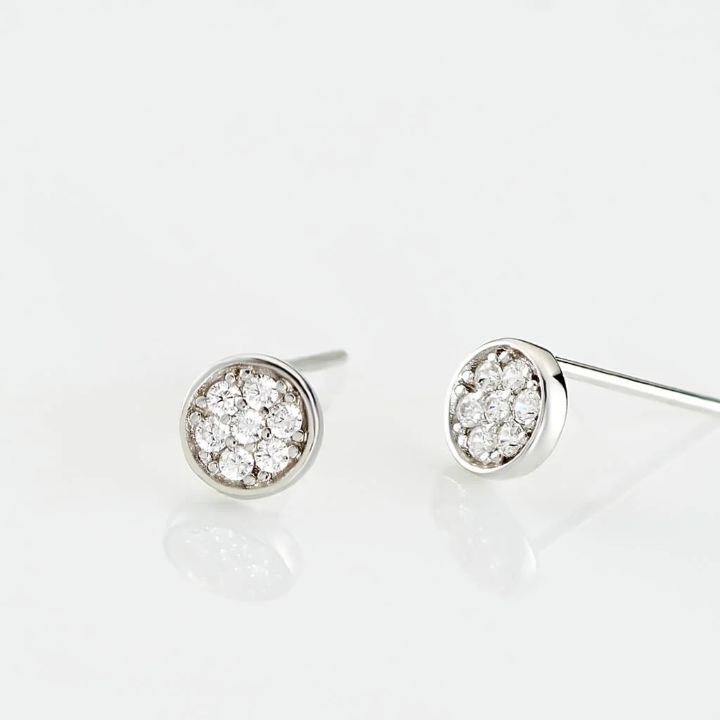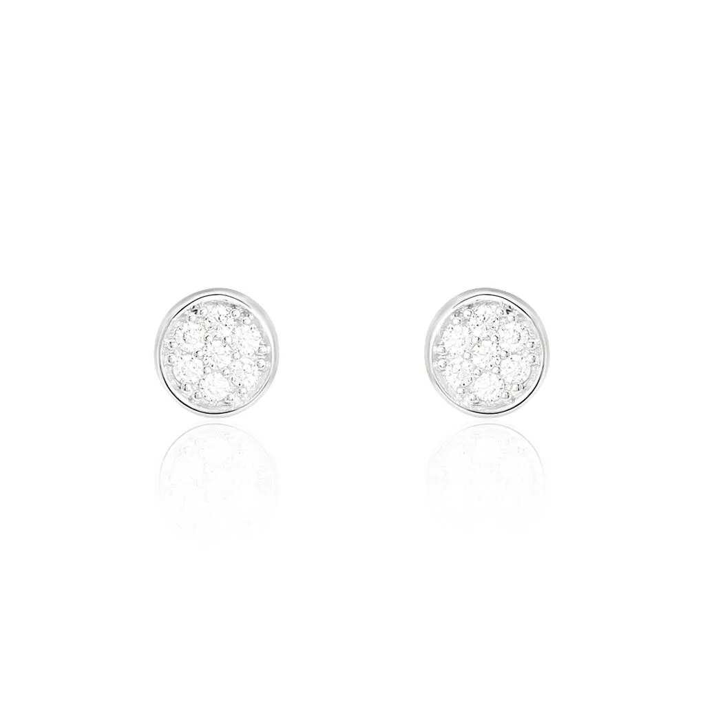 Boucles D’oreilles Puces Pastille Serti Clos Or Blanc Oxyde