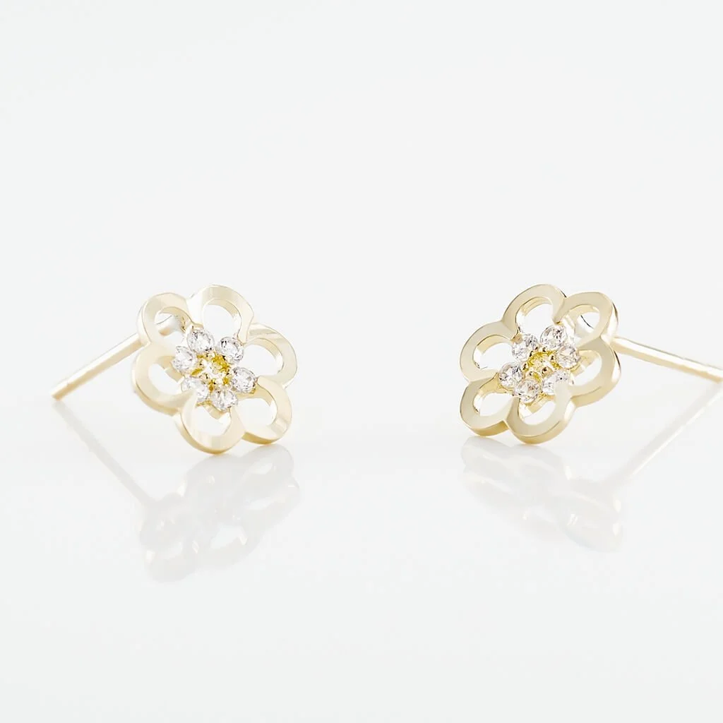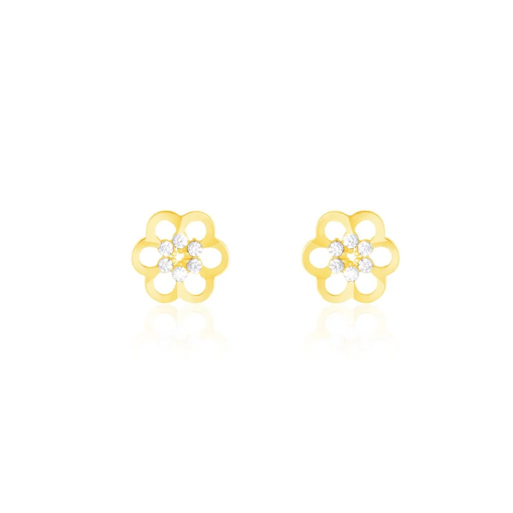 Boucles D’oreilles Puces Philine Fleur Or Jaune Oxyde De Zirconium