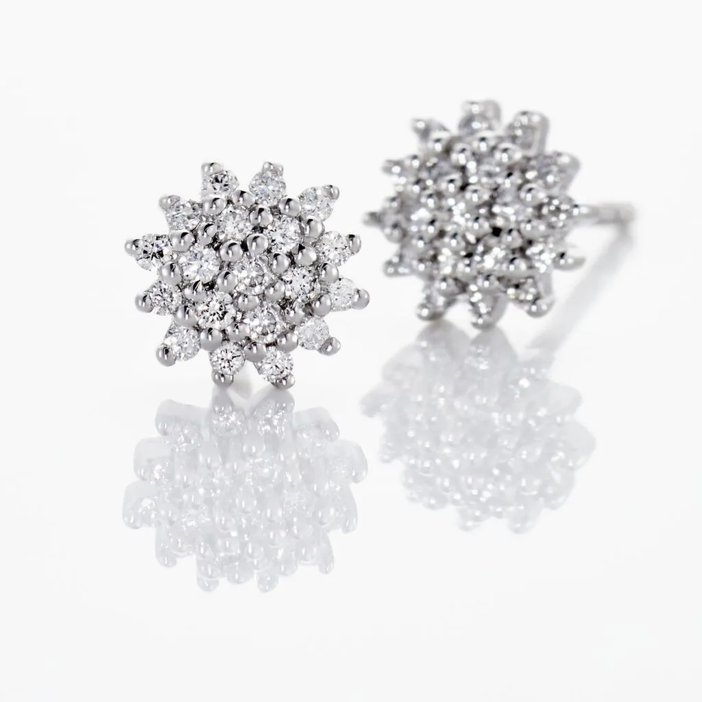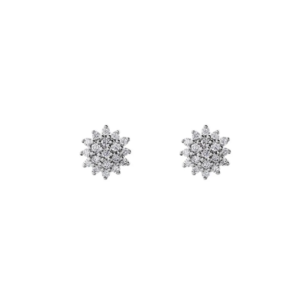 Boucles D’oreilles Puces Platine 950/1000 Choux Diamants 0.19cts