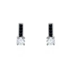 Boucles D’oreilles Puces Argent 925/1000 Sertis Griffes Oxyde De Zirconium 5mm Et Barrette Pavage Oxydes Noirs