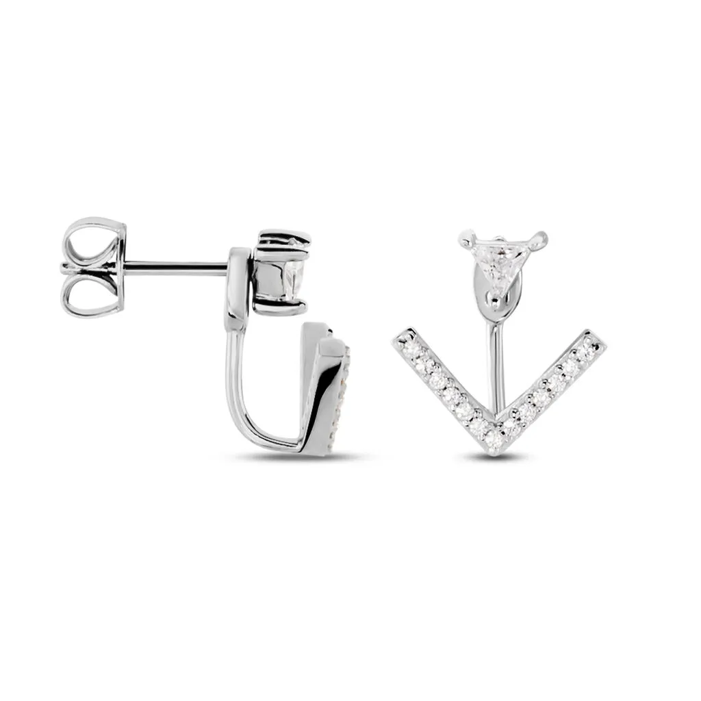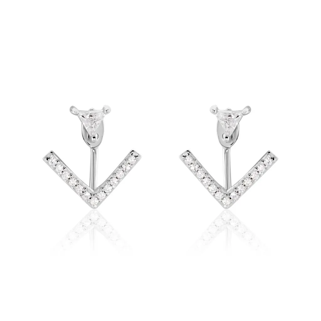 Boucles D’oreilles Puces Argent Blanc 925/1000 Forme Geometrique Oxydes De Zirconium Sertis Griffes
