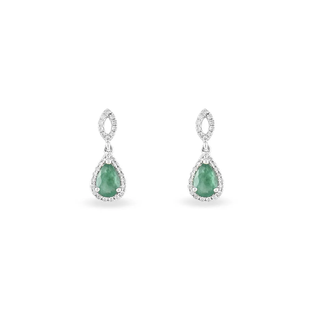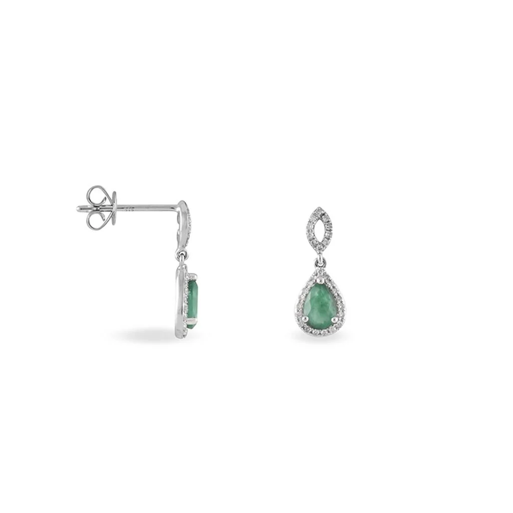 Boucles D’oreilles Or Blanc 375/1000 Sissi Emeraude Et Diamants