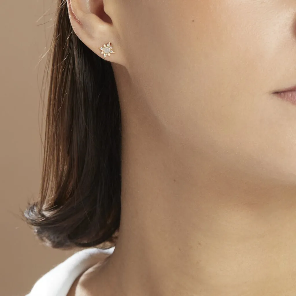 Boucles D’oreilles Puces Terry Or Jaune Calcedoine Et Oxyde