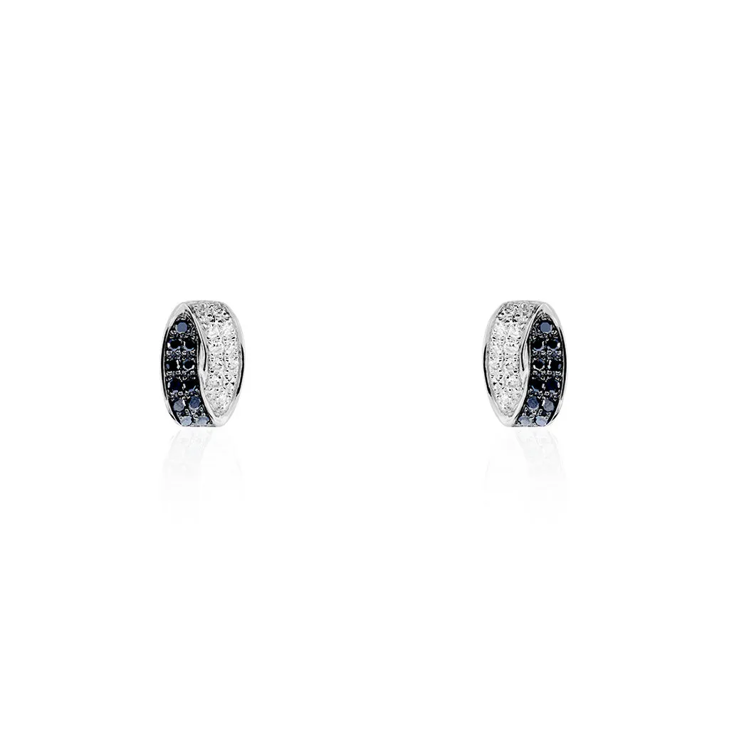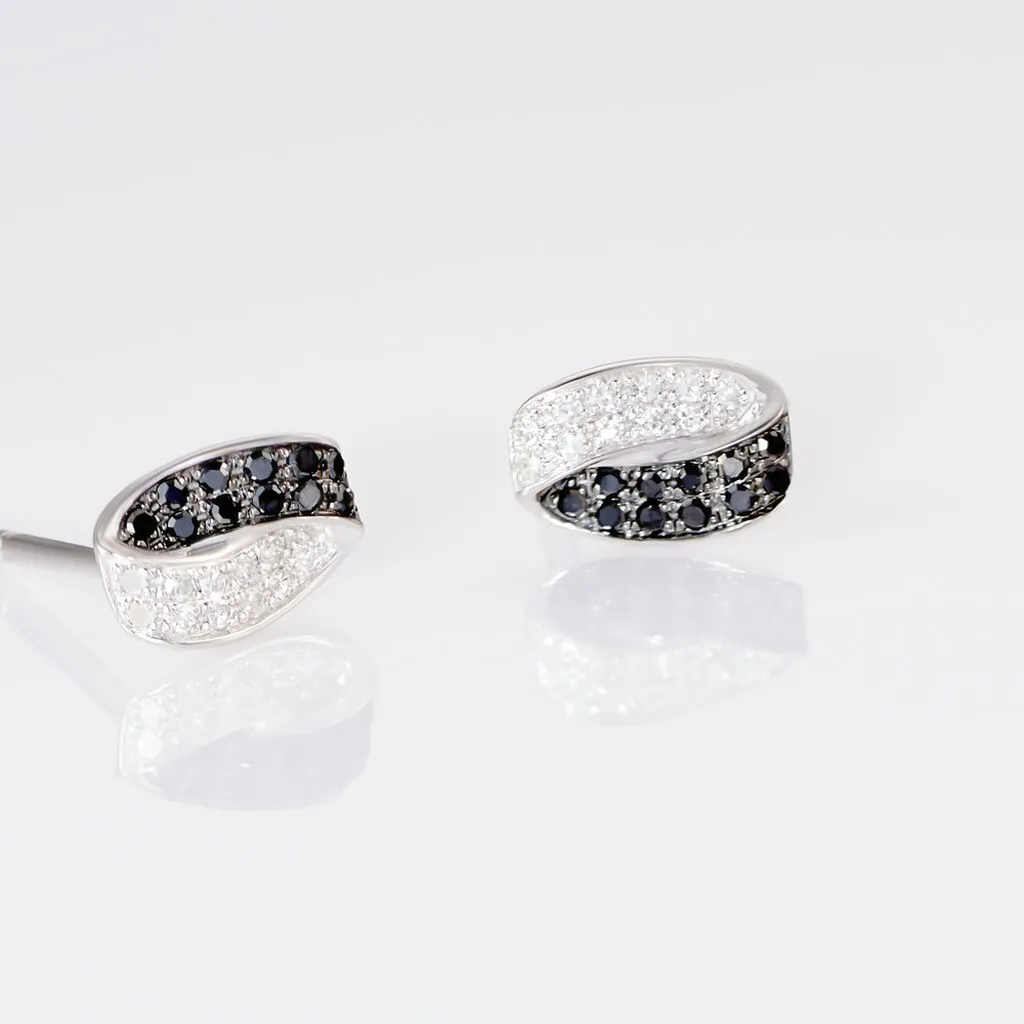 Boucles D’oreilles Or Blanc 375/1000 Diamant Blanc Et Diamant Noir Noeud Plat