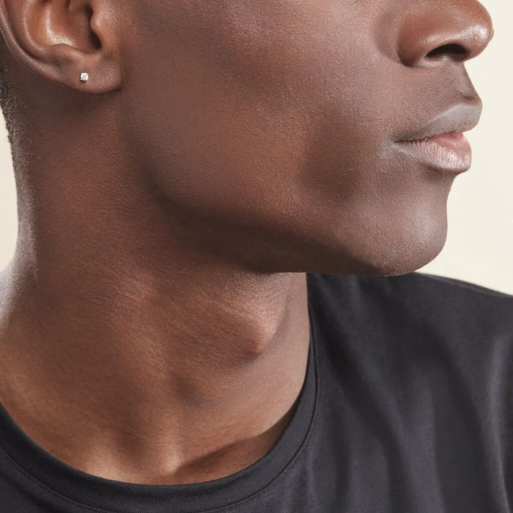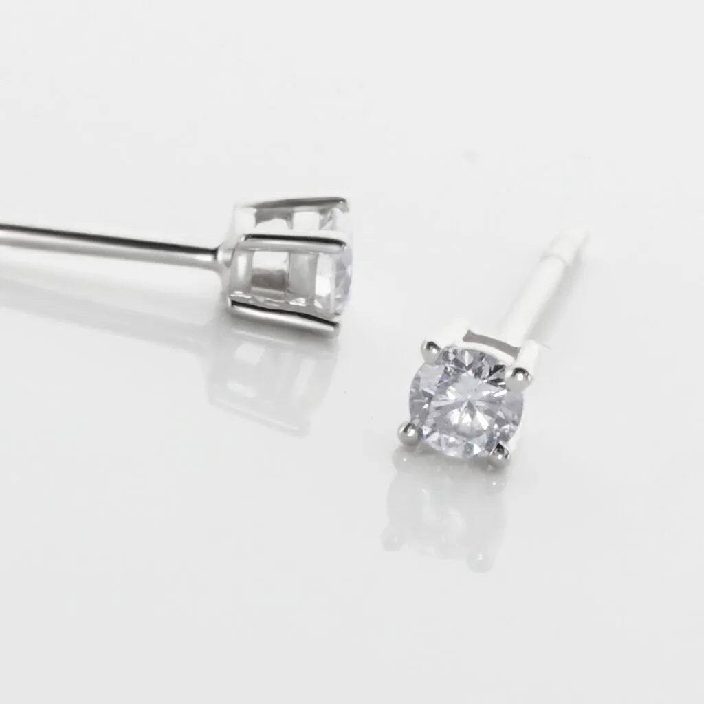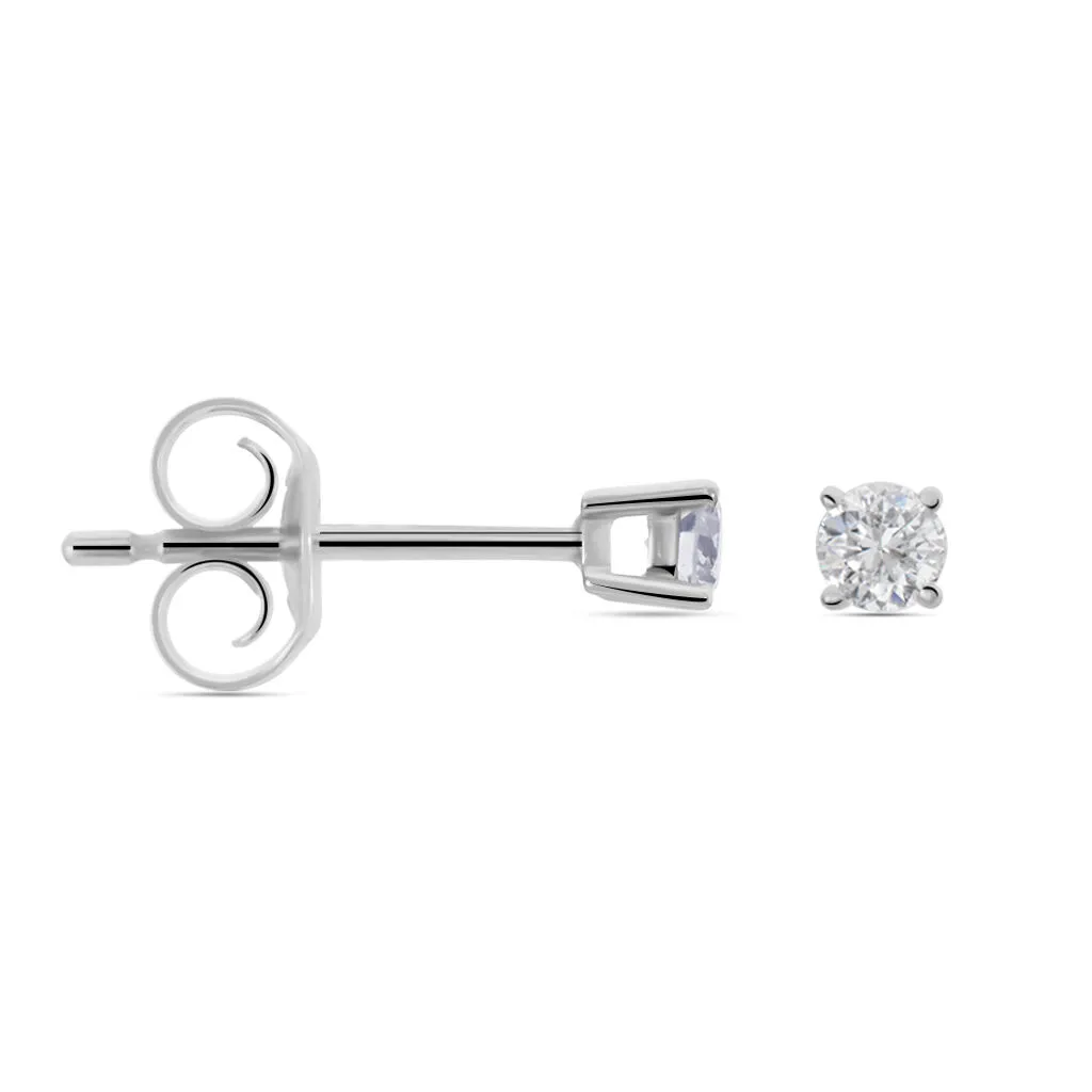 Boucles D’oreilles Or Blanc 375/1000 Puces Diamants 0.15cts Serti 4 Griffes