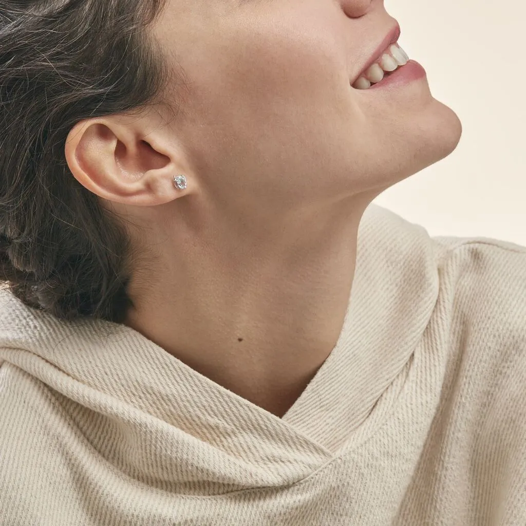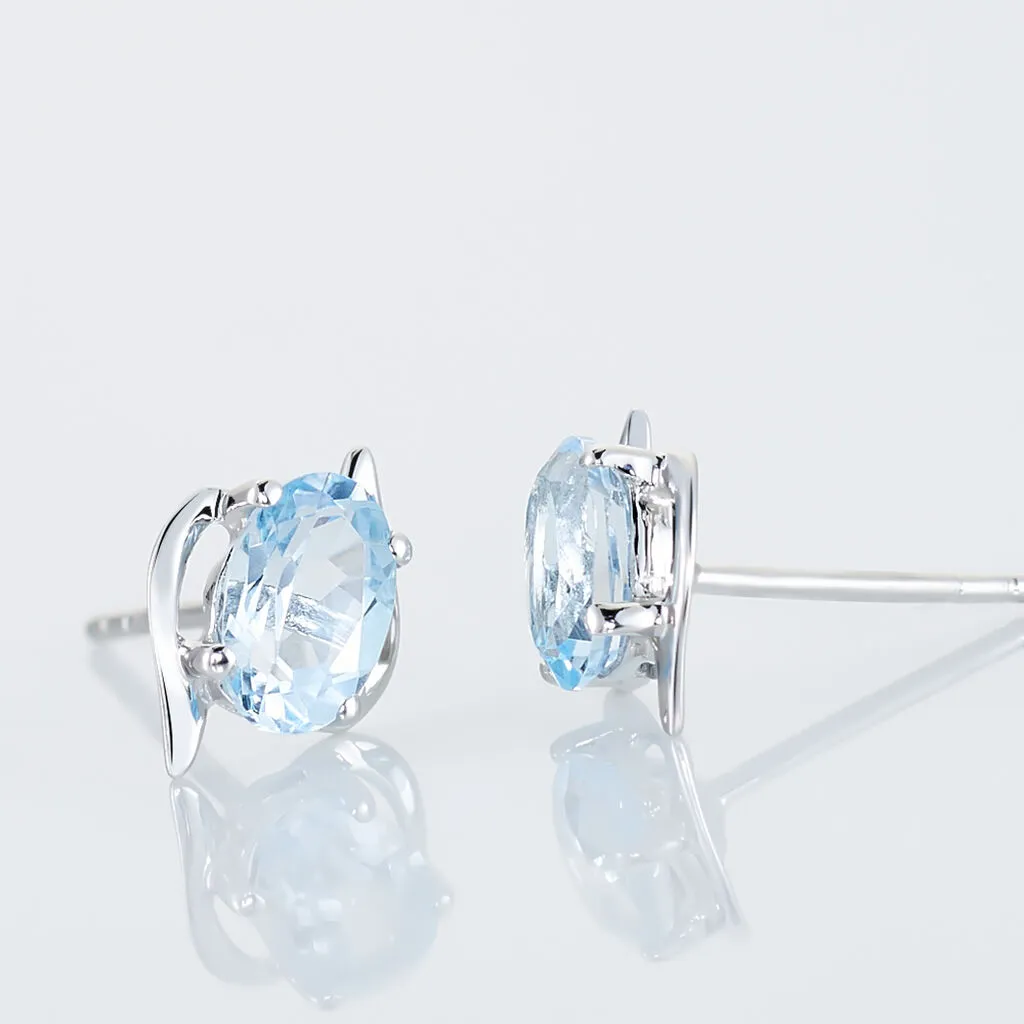 Boucles D’oreilles Puces Vrille Ovale Or Blanc Topaze