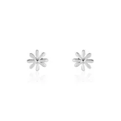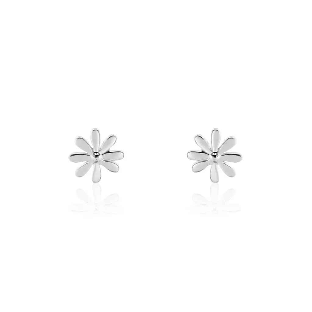 Boucles D’oreilles Puces Argent Blanc 925/1000 Fleurs