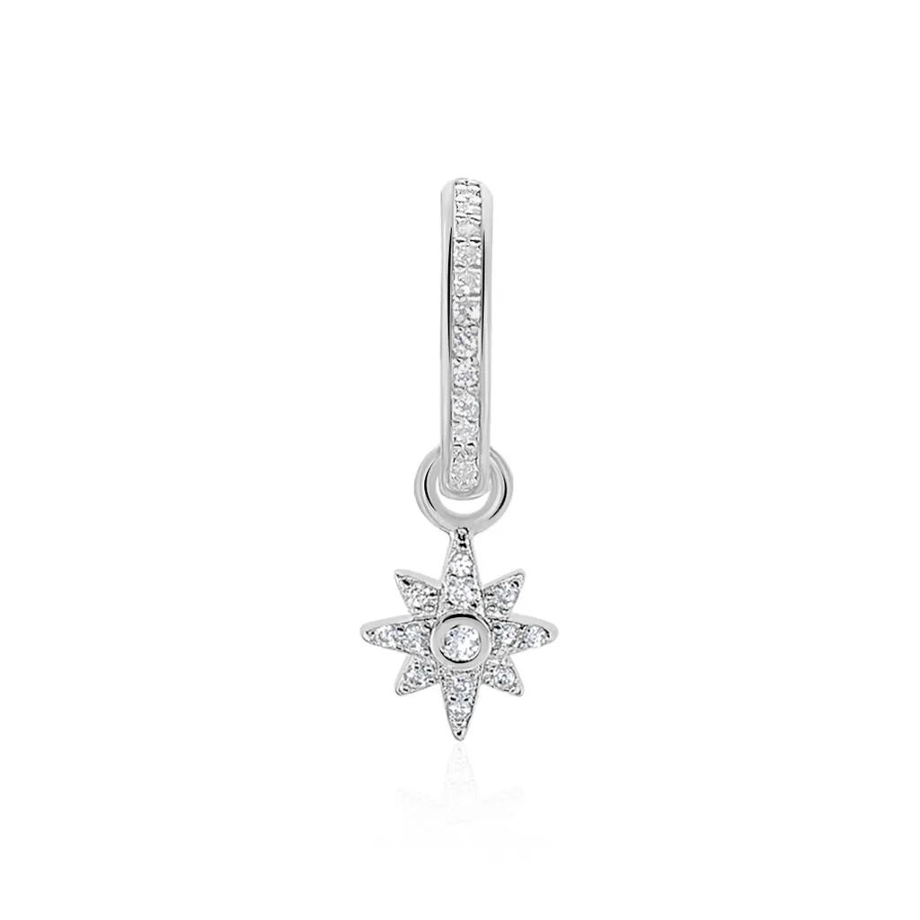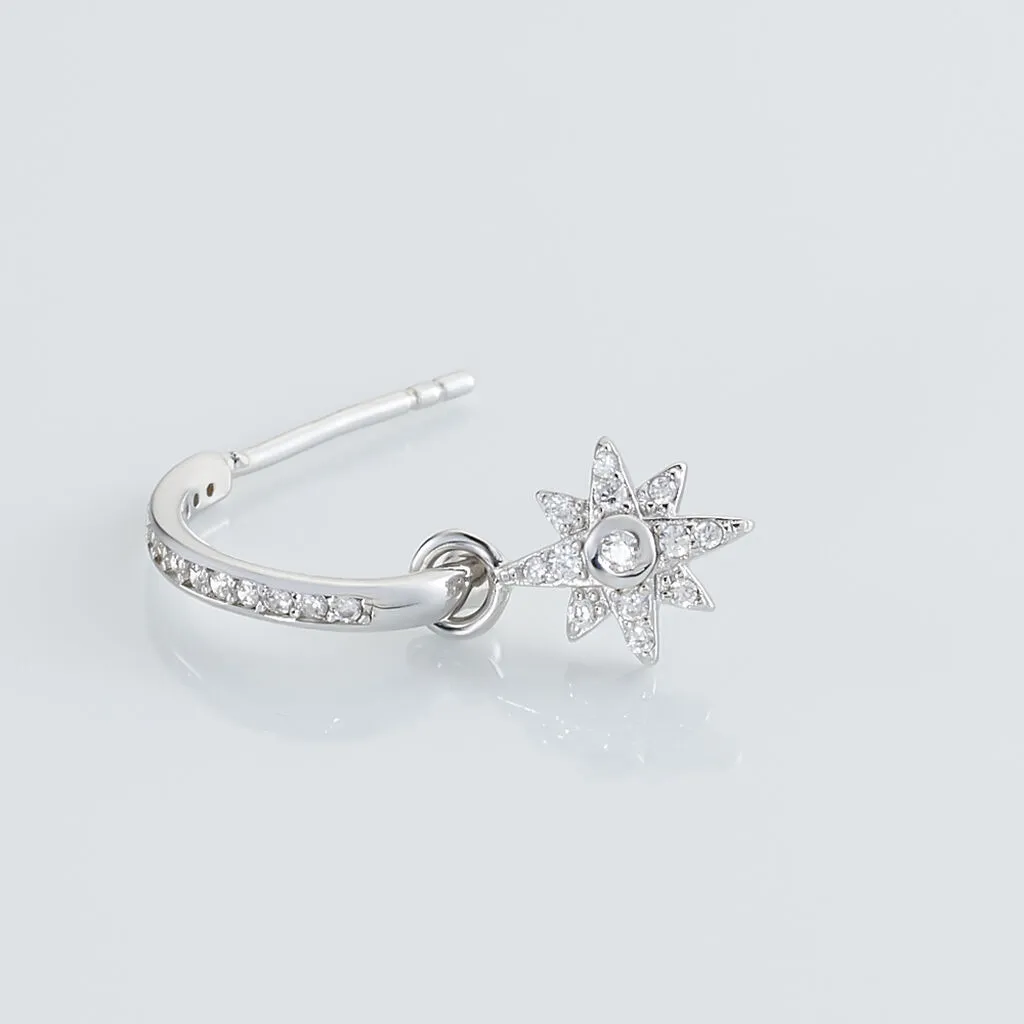 Creole Unitaire Argent Blanc 925/1000 Flocon De Neige Pavage Oxydes De Zirconium