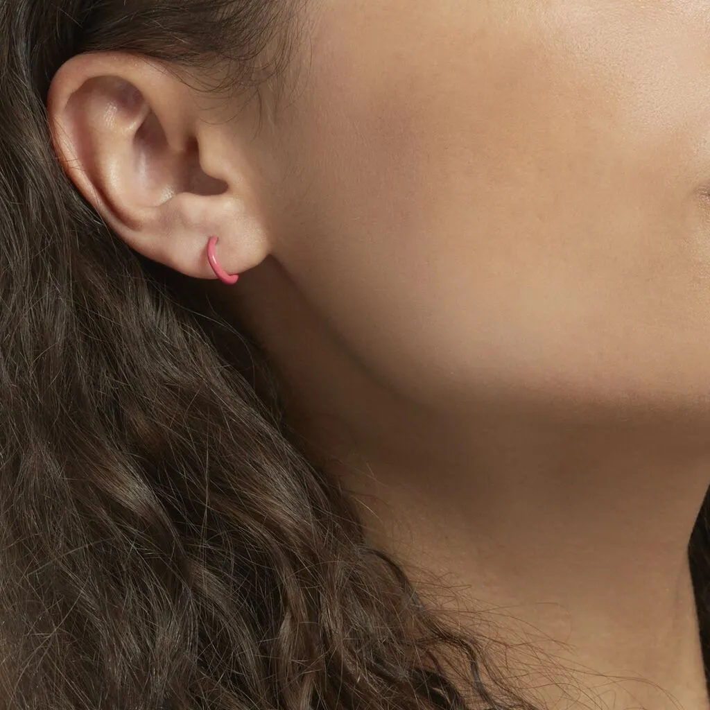 Créole Unitaire Argent Blanc 925/1000 Email Rose Diamètre 10mm
