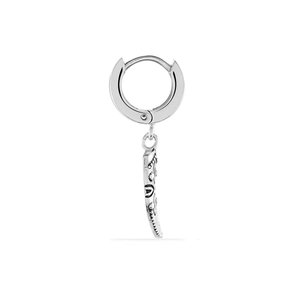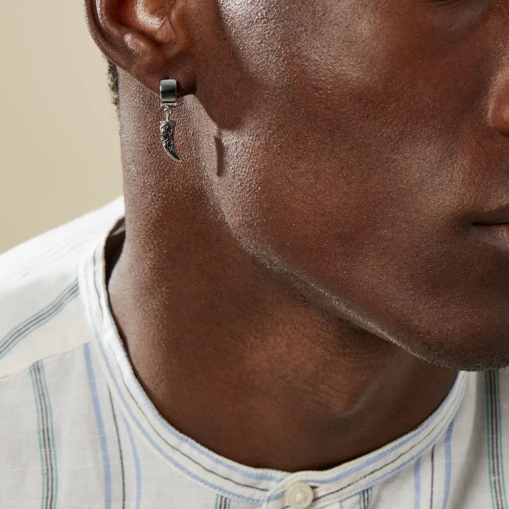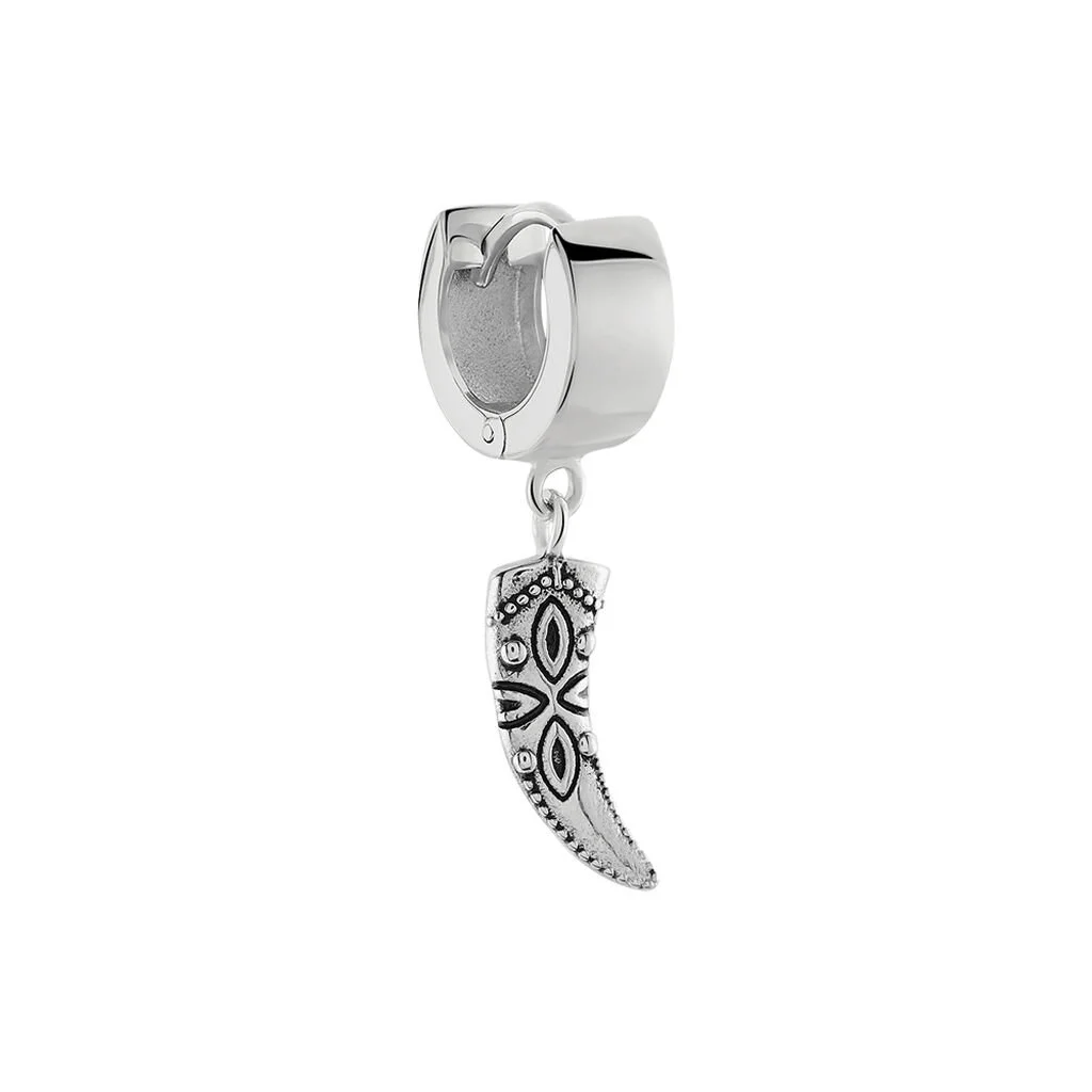 Creole Unitaire Argent Blanc 925/1000 Forme Corne Motifs Fantaisies Noircis Diametre 8mm