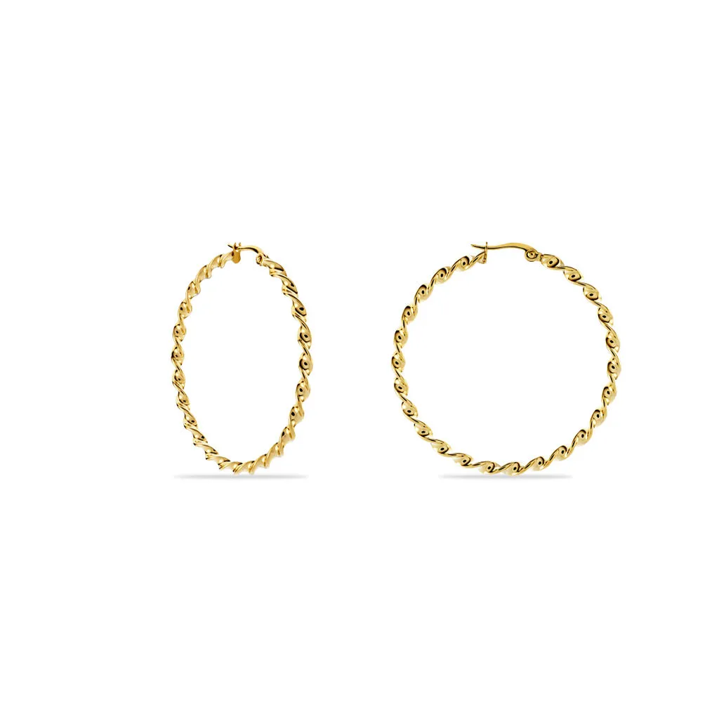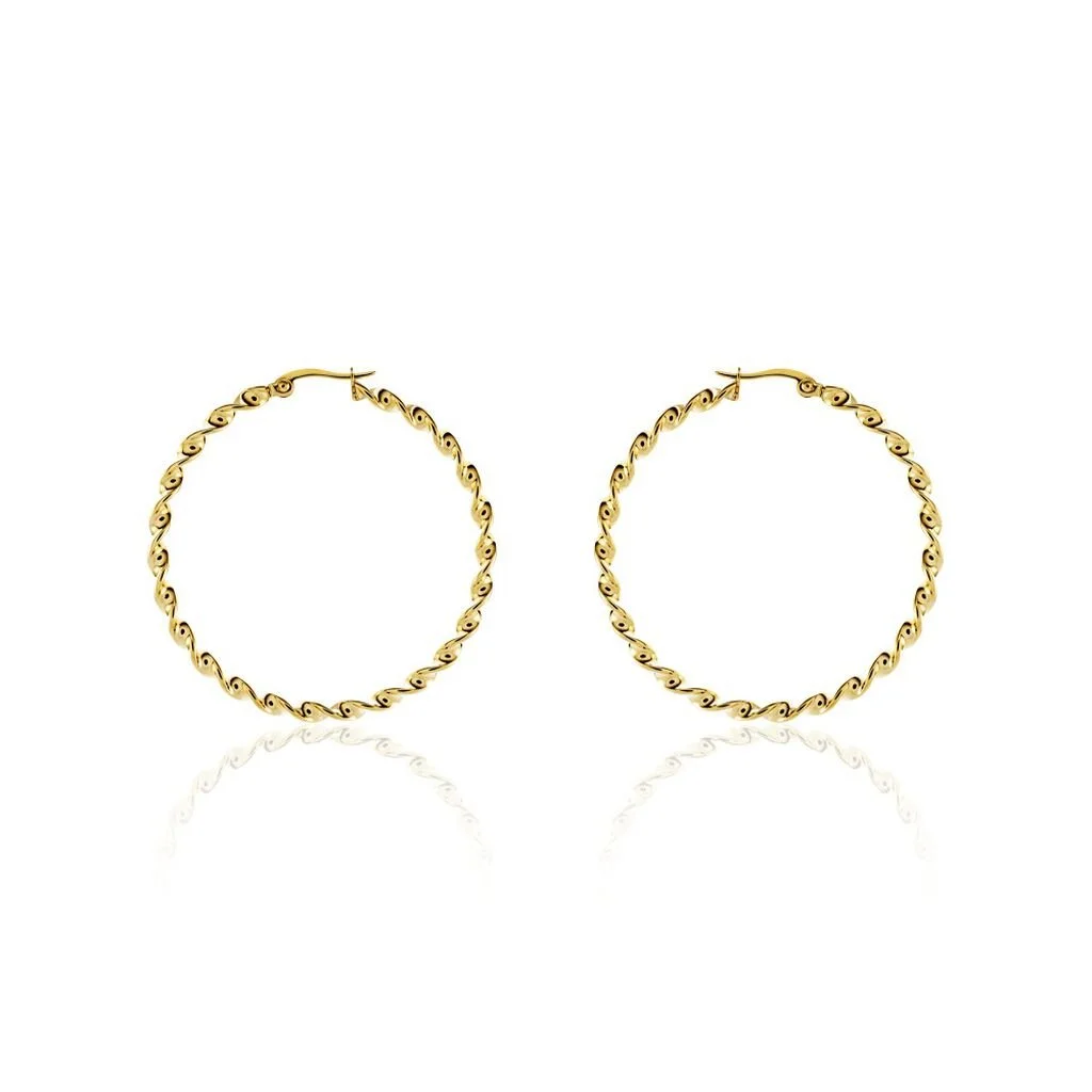 Creoles Acier Dore Torsadees Largeur 3mm Diametre 40mm