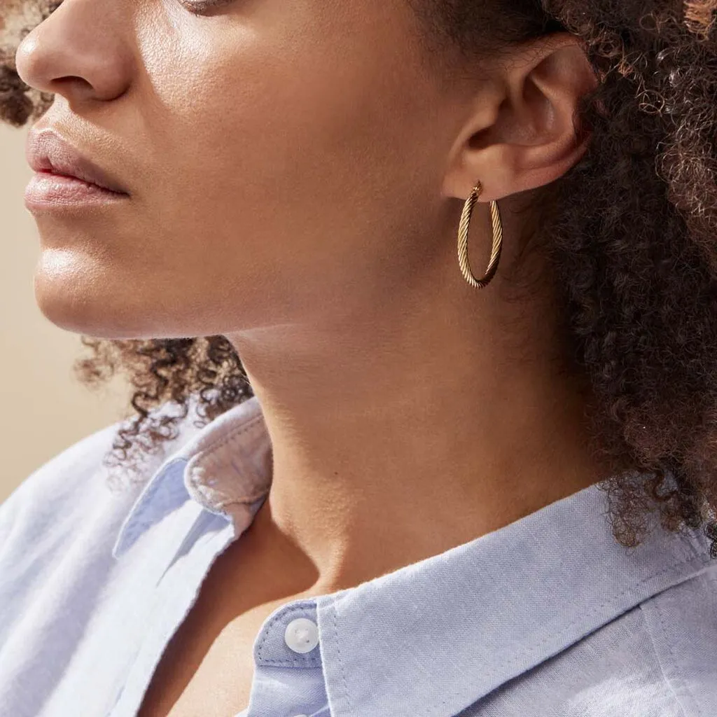Creoles Acier Dore Effet Twiste Largeur 2.9mm Diametre 30mm