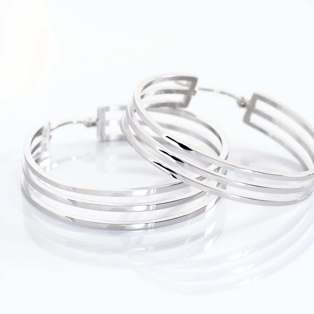 Creoles Acier Blanc 3 Rangs Ajoures