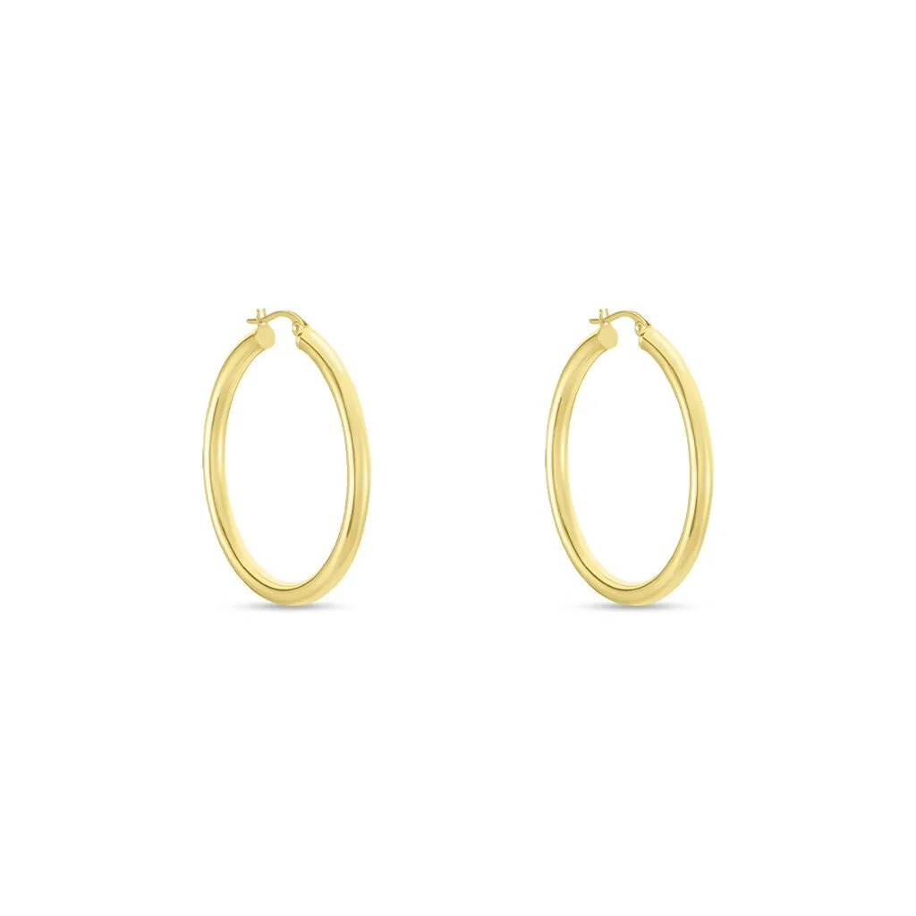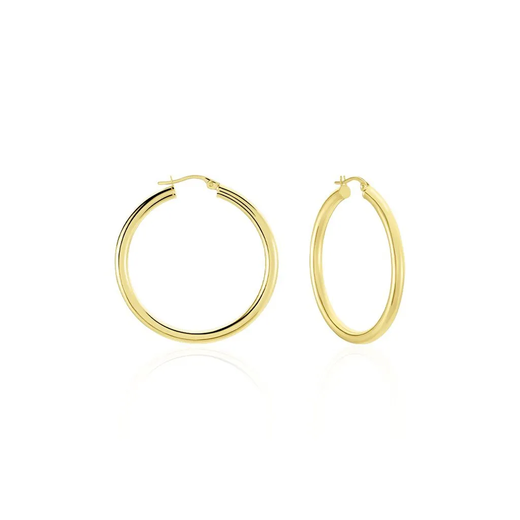 Créoles Or Jaune 375/1000 Fil Rond Lisse Largeur 3mm Diamètre 30mm