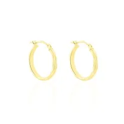 Créoles Or Jaune 375/1000 Fil Demi Jonc Effet Diamanté Largeur 3mm Diamètre 15mm