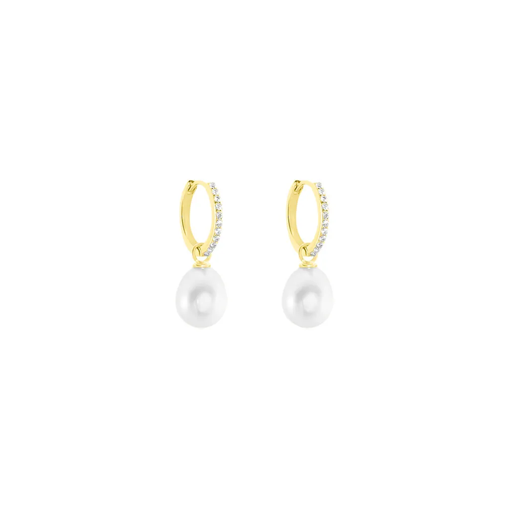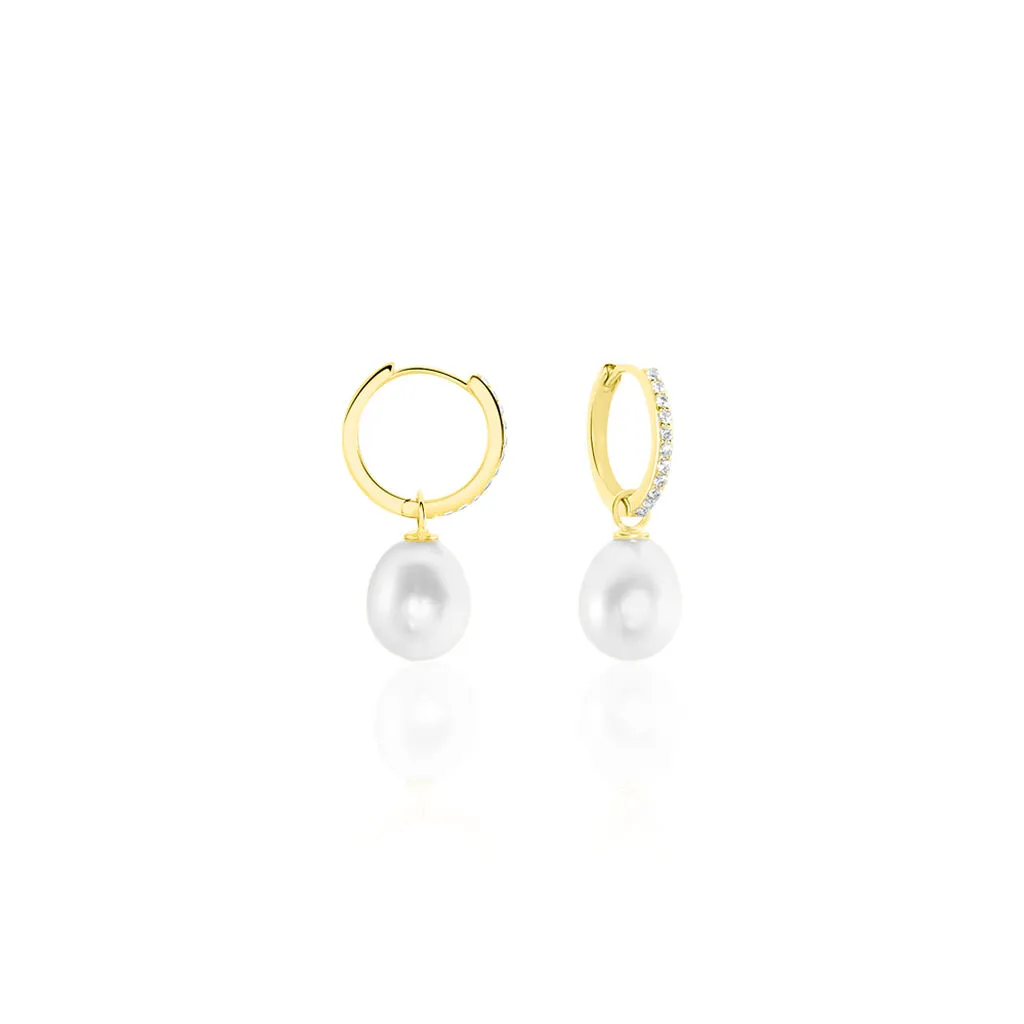 Créoles Anes Poire Or Jaune Perle De Culture Et Oxyde De Zirconium