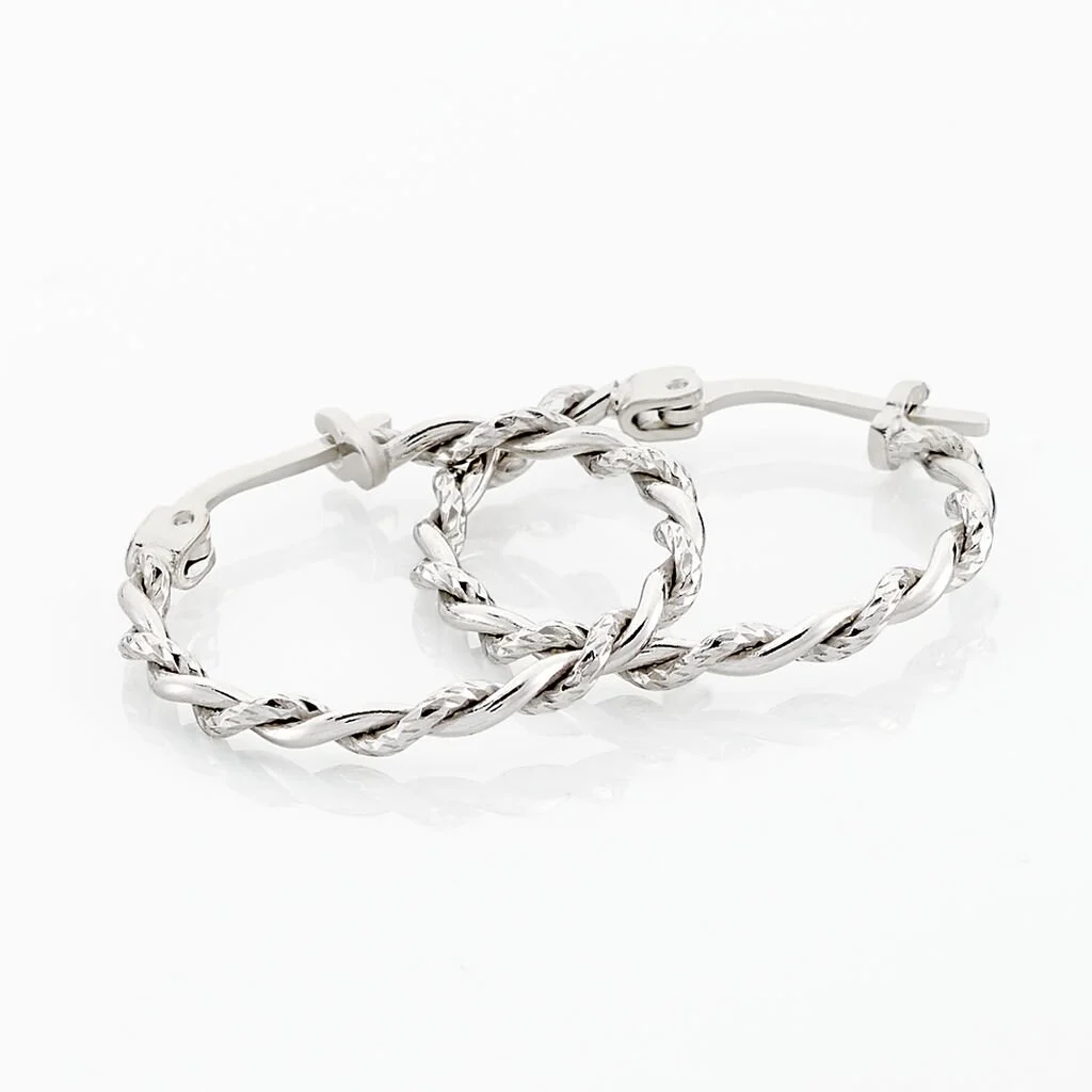 Créoles Argent Blanc 925/1000 Effet Torsade Fil Diamante Et Fil Lisse Largeur 2mm Diametre 17mm