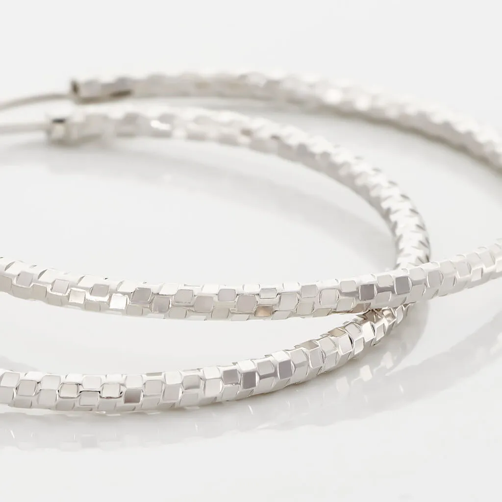 Créoles Argent Blanc 925/1000 Diamantees Largeur 2mm Diametre 30mm