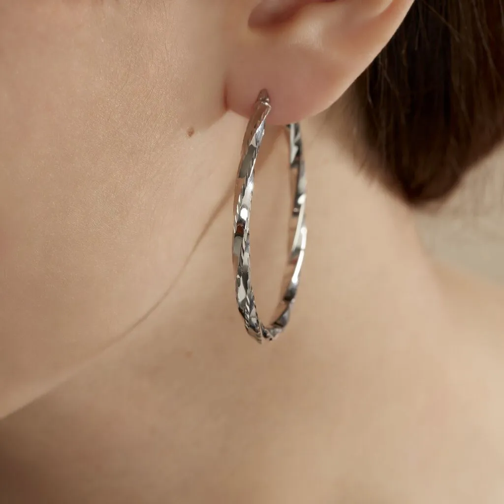Créoles Argent Blanc 925/1000 Carrees Helicoidales Largeur 3.4mm Diametre 40mm