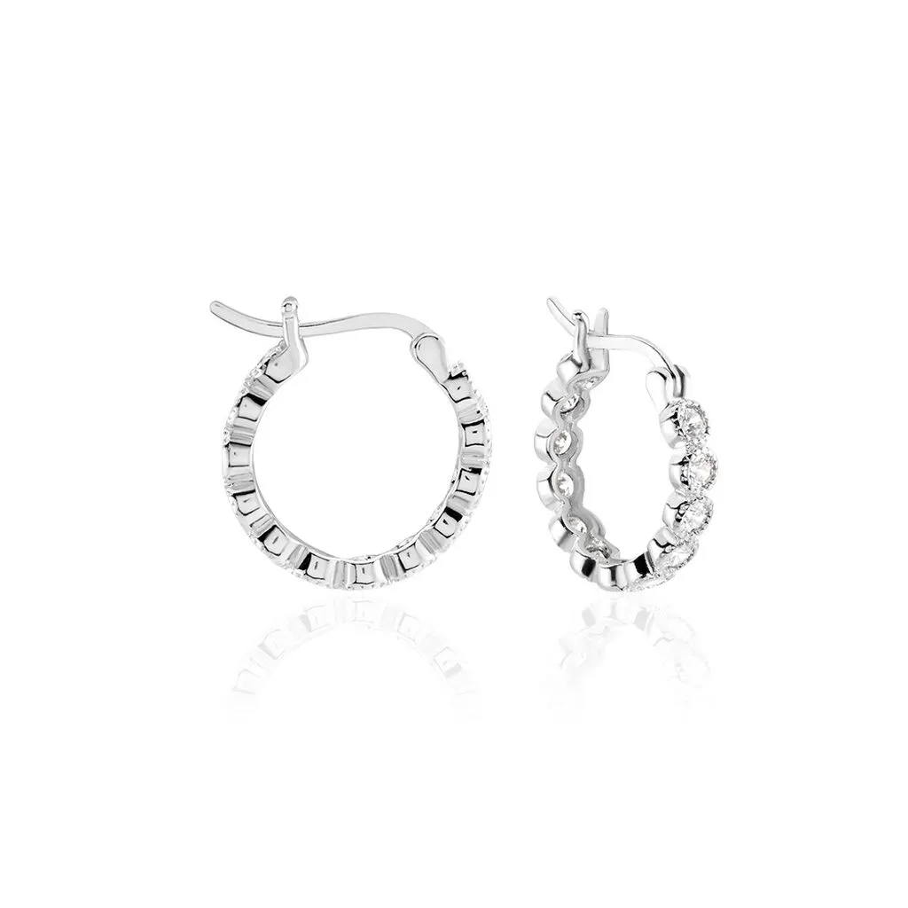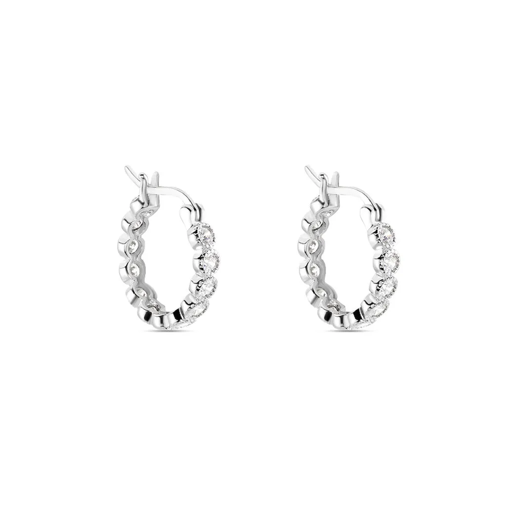 Créoles Argent Blanc 925/1000 Effet Perlé Oxydes De Zirconium Serti Clos Diamètre 18mm