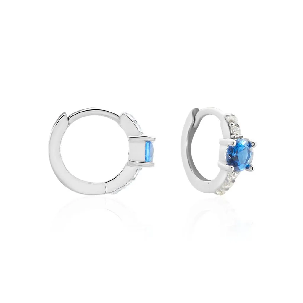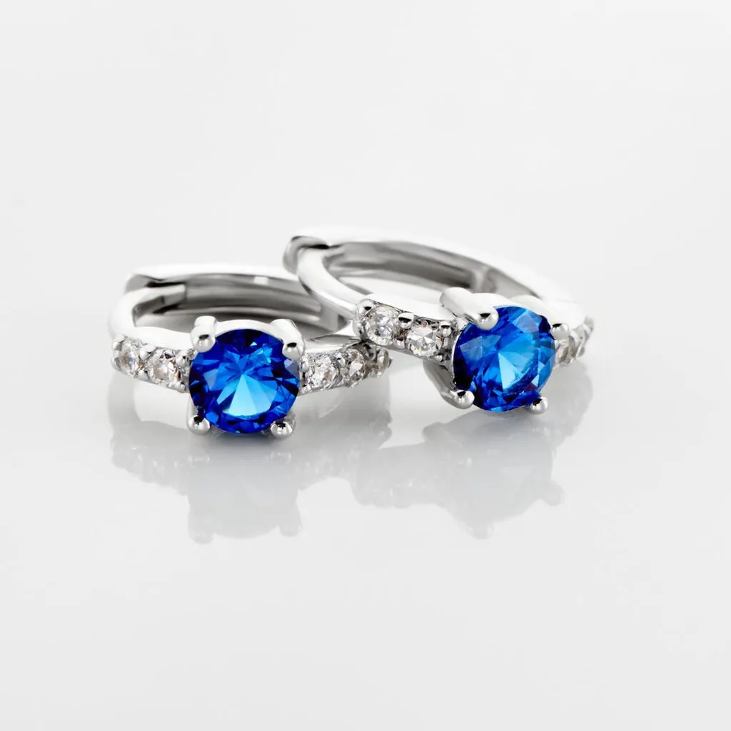 Creoles Argent Blanc 925/1000 Pavage Oxydes De Zirconium Avec Oxydes De Zirconium Bleus Serti Griffes Centrales