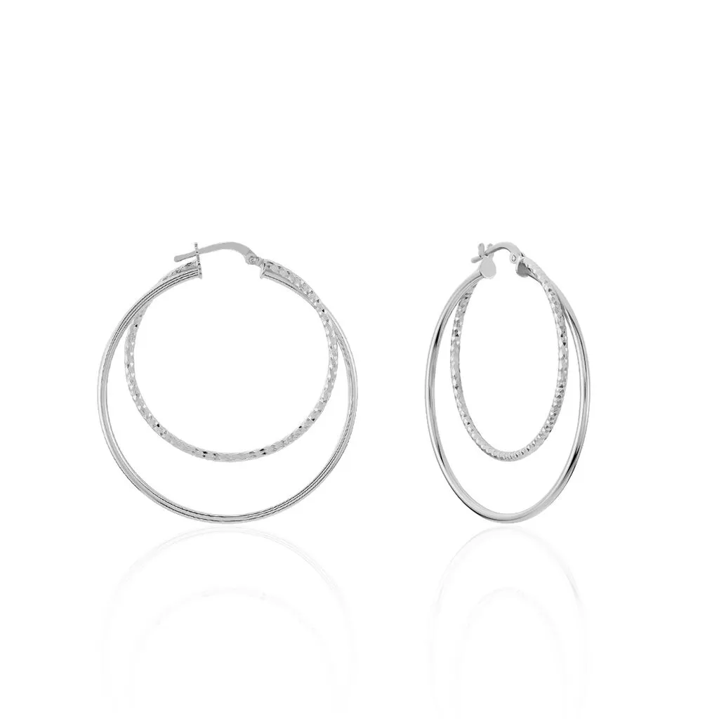 Créoles Argent Blanc 925/1000 Double Fil 1 Lisse 1 Diamante Largeur 1.5mm Diametre 40mm
