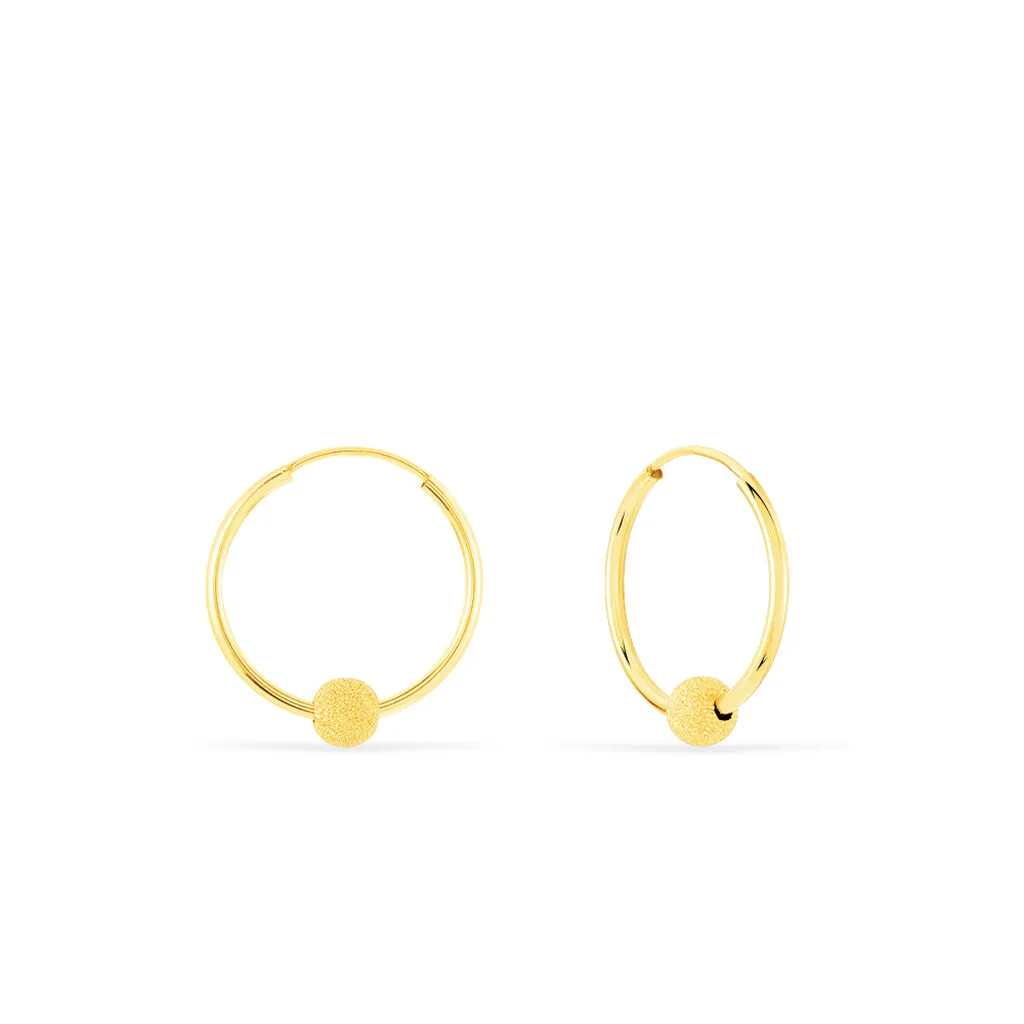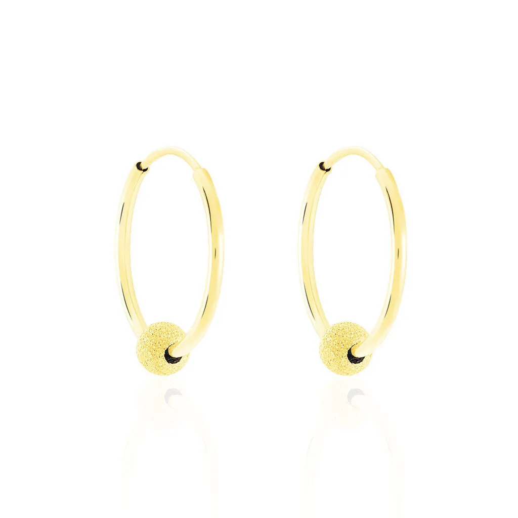 Créoles Or Jaune 375/1000 Boules Effet Sablé Fil Flexible Lisse Largeur 1.2mm Diamètre 16mm