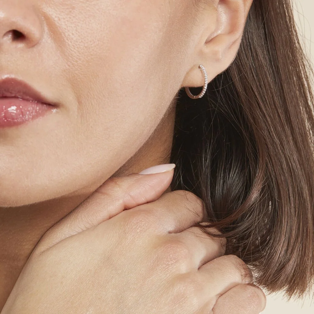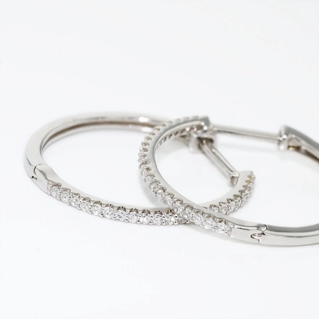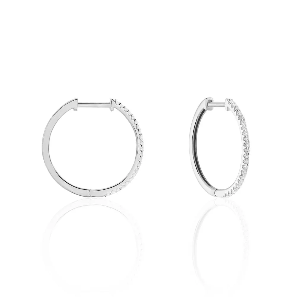 Créoles Or Blanc 375/1000 Diamants 0.12ct Diamètre 15mm Largeur 0.95mm
