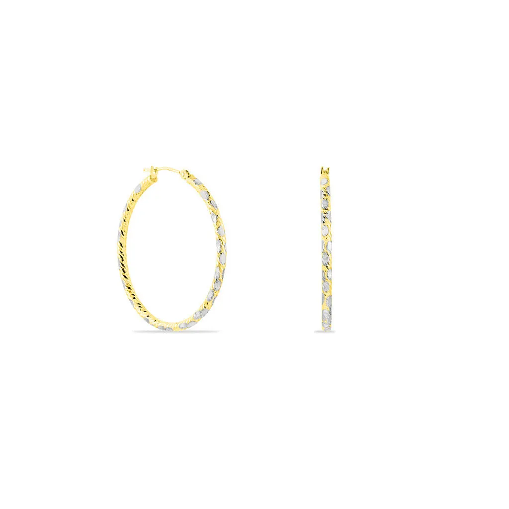 Créoles Or Bicolore 375/1000 Diamantées Fils Ronds Diamètre 30mm Largeur 2mm