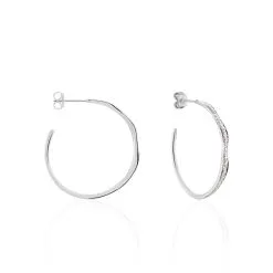 Creoles Argent 925/1000 Forme Cercle Ondule Serti Micro Setting Oxydes De Zirconium Diametre 33mm
