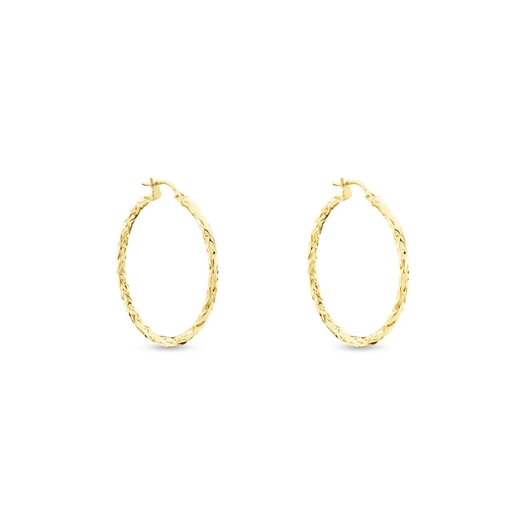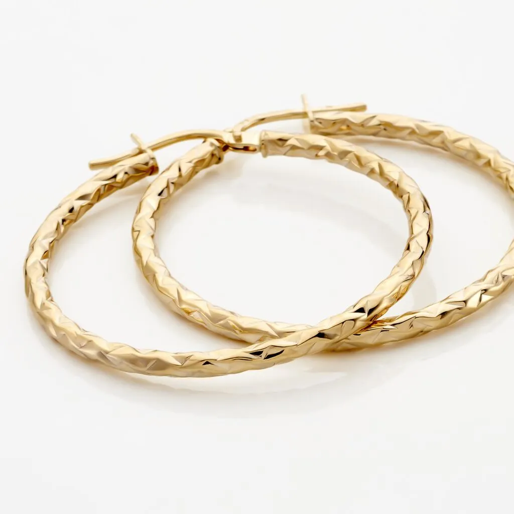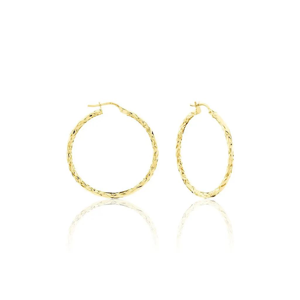 Créoles Or Jaune 375/1000 Fil Rond Diamante Epaisseur 2mm Diamètre 30mm